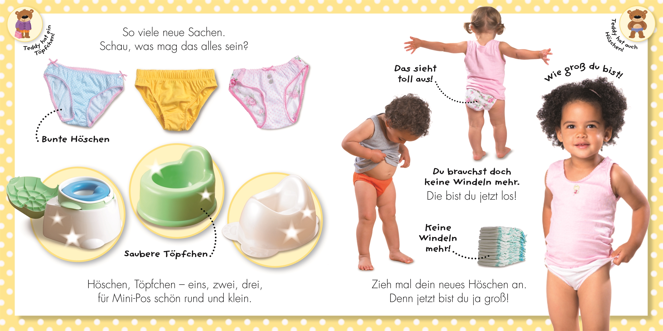 Süß fotografiertes Bilderbuch zur spielerischen Heranführung ans Töpfchen