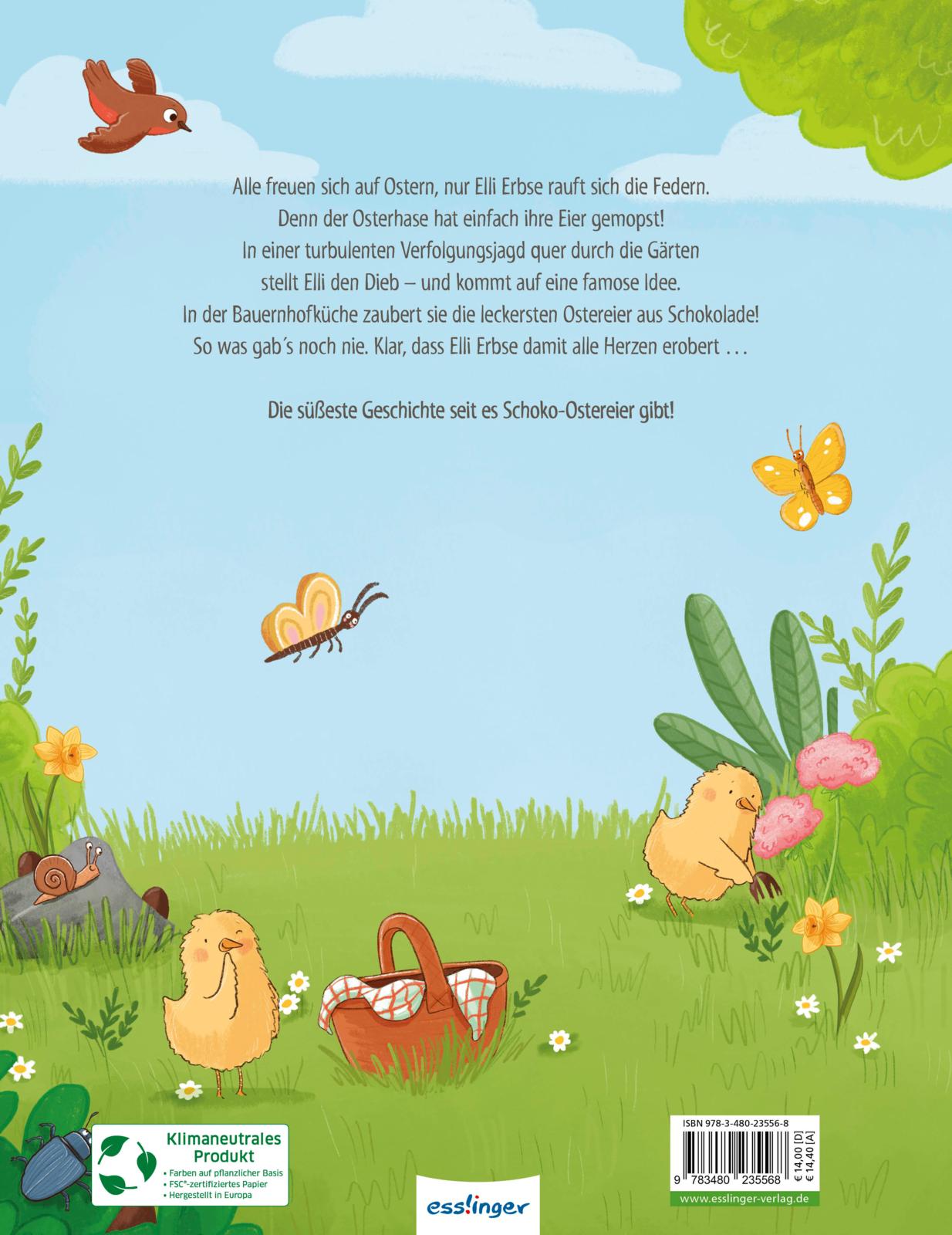Zuckersüße Ostergeschichte über die Erfindung der Schoko-Ostereier! Alle freuen sich auf Ostern, nur Elli Erbse rauft sich die Federn. Denn der Osterhase hat einfach ihre Eier gemopst! In einer turbulenten Verfolgungsjagd quer durch die Gärten stellt Elli den Dieb - und kommt auf eine famose Idee. In der Bauernhofküche zaubert sie die leckersten Ostereier aus Schokolade! So was gab´s noch nie ... Klar, dass Elli Erbse damit alle Herzen erobert ... Die süßeste Geschichte seit es Schoko-Ostereier gibt.