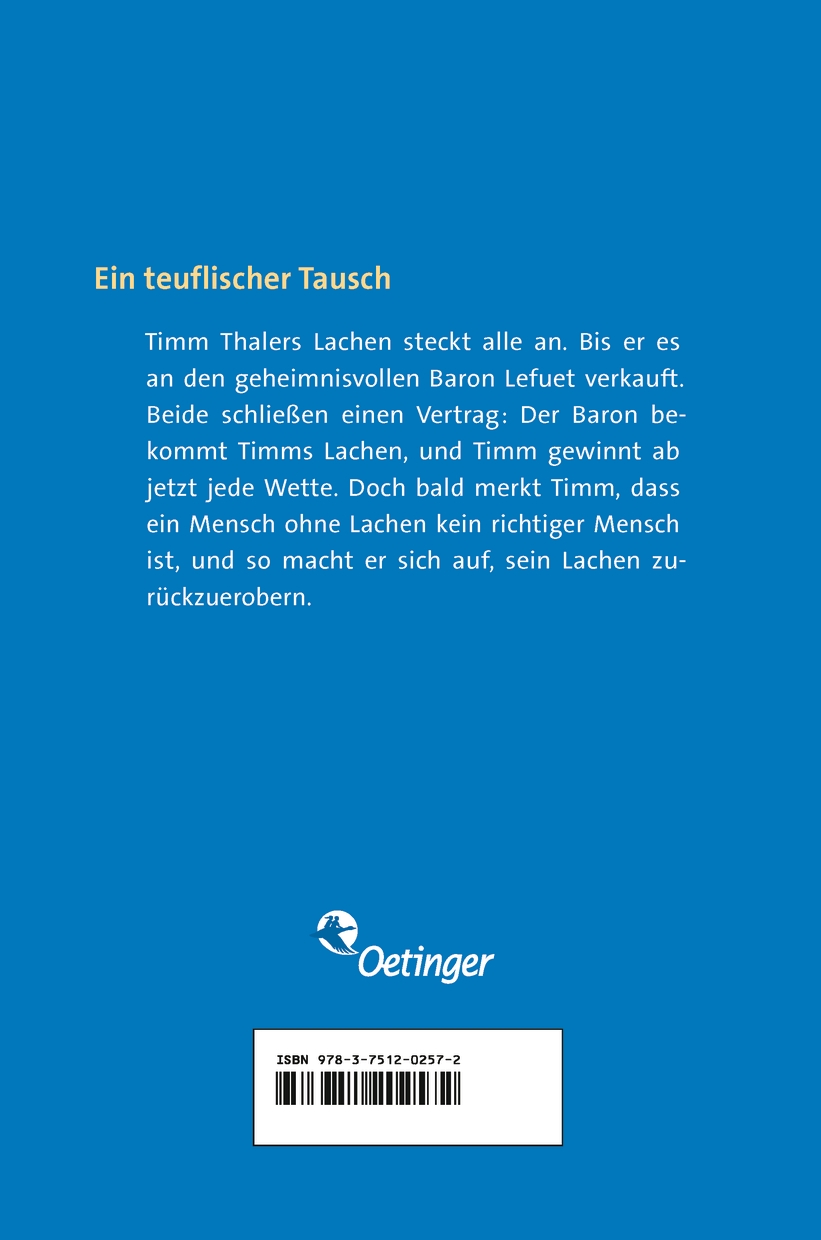 Vom teuflischen Tausch des Lachens! Timm Thalers wunderbares Lachen steckt alle an. Doch er verkauft es an den geheimnisvollen Baron Lefeut, der ihm dafür viel Geld verspricht: Der Baron erhält Timms Lachen, und Timm gewinnt ab jetzt jede Wette. Bald aber merkt Timm, dass ein Mensch ohne Lachen kein richtiger Mensch ist - gleich, wie viel Reichtum er anhäuft. Timm schmiedet einen Plan, wie er sein Lachen zurück erobern kann. Lefeut ist nicht leicht zu überlisten, aber Timm gibt nicht auf ... Die Geschichte von Timm Thaler wurde mehrfach verfilmt. Der Kinderbuch-Klassiker - eine Parabel über den Umgang mit Macht und Geld.