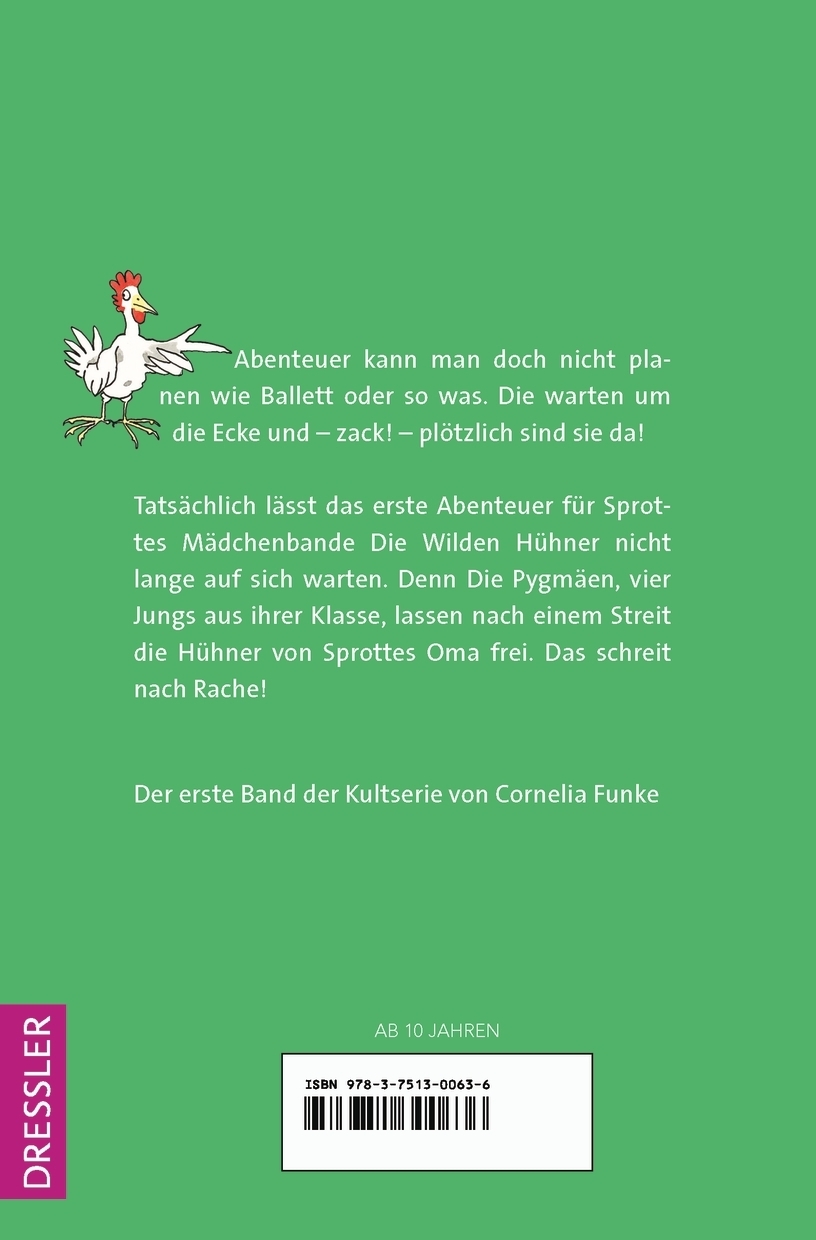 Achtung, die Wilden Hühner kommen! "Abenteuer kann man doch nicht planen wie Ballett oder so was. Die warten um die Ecke und - zack! - plötzlich sind sie da!", erklärt Sprotte ihren Freundinnen. Tatsächlich lässt das erste Abenteuer für ihre Mädchenbande DIE WILDEN HÜHNER nicht lange auf sich warten. Denn DIE PYGMÄEN, vier Jungs aus ihrer Klasse, lassen nach einem Streit die Hühner von Sprottes Oma frei. Das schreit natürlich nach Rache. Die Kultserie von Cornelia Funke im Taschenbuch.