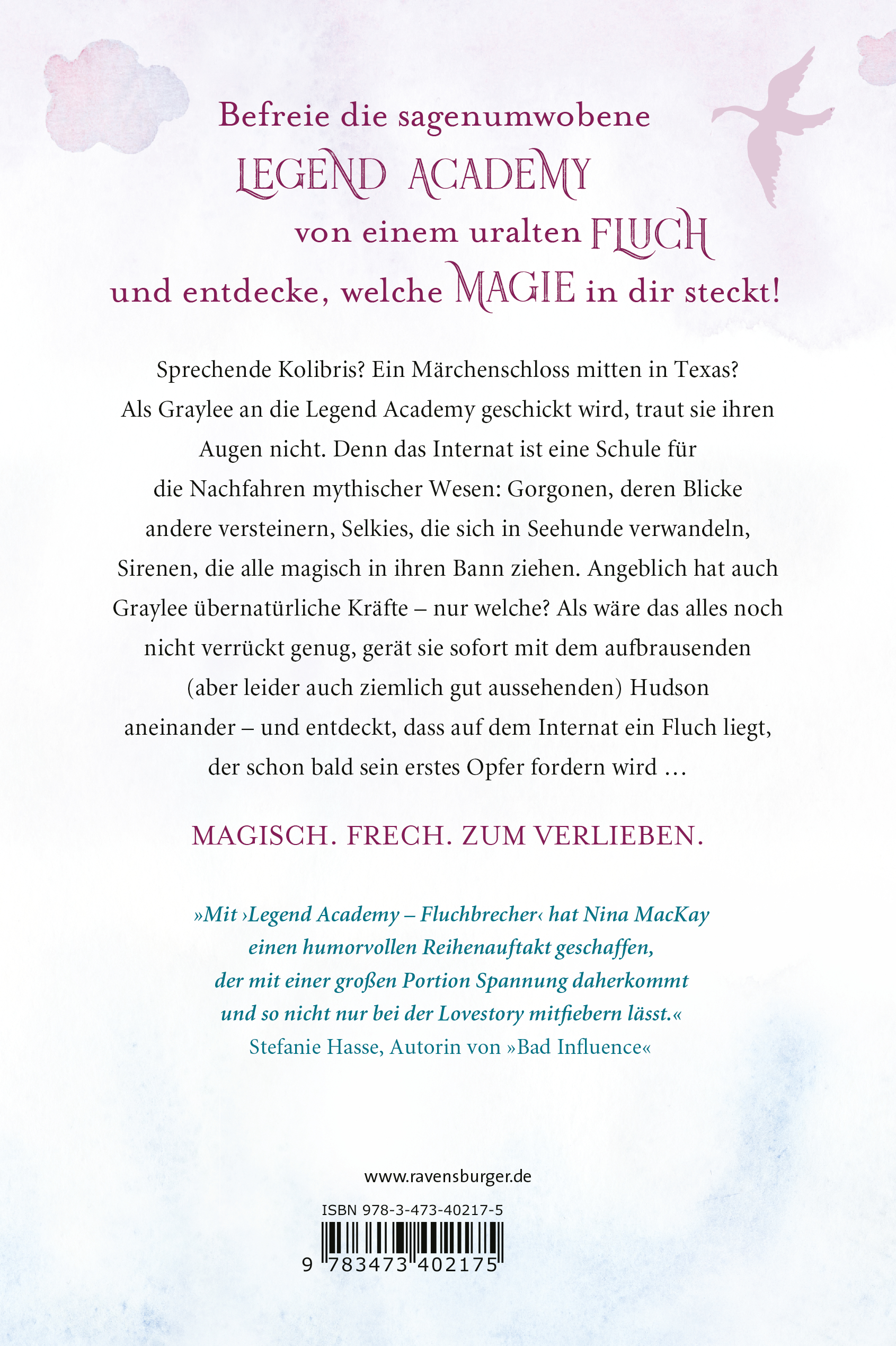 Sprechende Kolibris? Ein Schloss in Texas? Als Graylee an die Legend Academy geschickt wird, traut sie ihren Augen nicht. Denn das Internat ist eine Schule für die Nachfahren mythischer Wesen. Angeblich hat auch Graylee übernatürliche Kräfte - nur welche? Als wäre das alles nicht verrückt genug, gerät sie sofort mit dem aufbrausenden (aber leider auch ziemlich gut aussehenden) Hudson aneinander - und entdeckt, dass auf dem Internat ein Fluch liegt, der schon bald sein erstes Opfer fordern wird ...