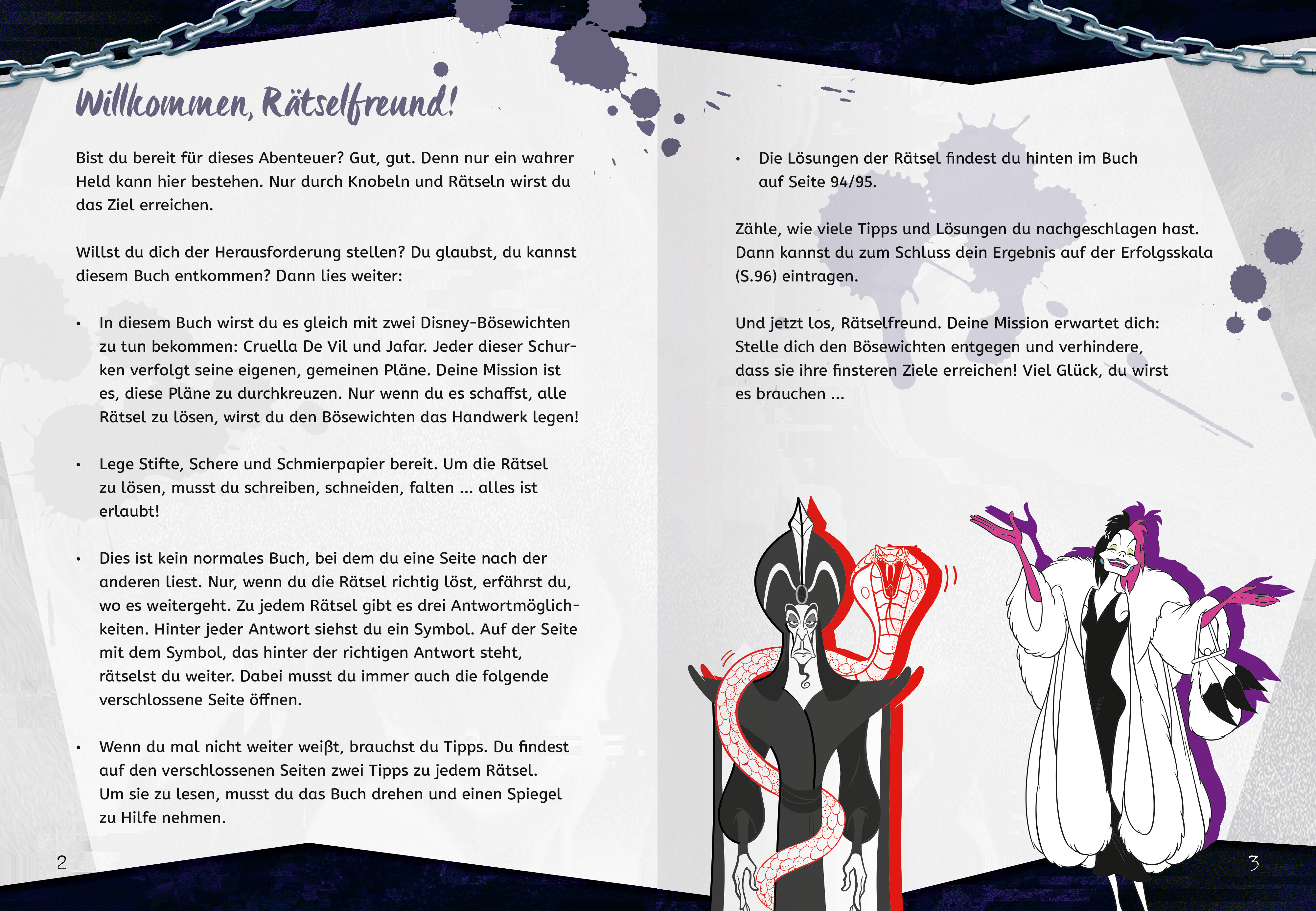 Kinder ab 10 Jahren tauchen ein in die Welt von Disneys Bösewichten und können hier zwei Fälle mit vielen kniffligen Knobelaufgaben lösen. Neben logischem Denken ist auch Kreativität gefragt: schreiben und malen, ausschneiden, falten oder zerreißen - alles ist erlaubt! Nur wer alle Rätsel richtig löst, wird es schaffen, den Bösewichten das Handwerk zu legen. Die Rätsel im Buch kann ein Kind ab 10 Jahren alleine bewältigen. Manche sind einfacher, manche ziemlich knifflig. Aber es macht auch sehr viel Spaß, mit der ganzen Familie oder Freunden gemeinsam zu rätseln und die beiden Fälle zu knacken. Wer nicht trickst, ist dann mehrere Stunden gut beschäftigt. Ravensburger Exit Room Rätsel fordern heraus, bringen das Abenteuer nach Hause und sind dabei ungemein unterhaltsam.