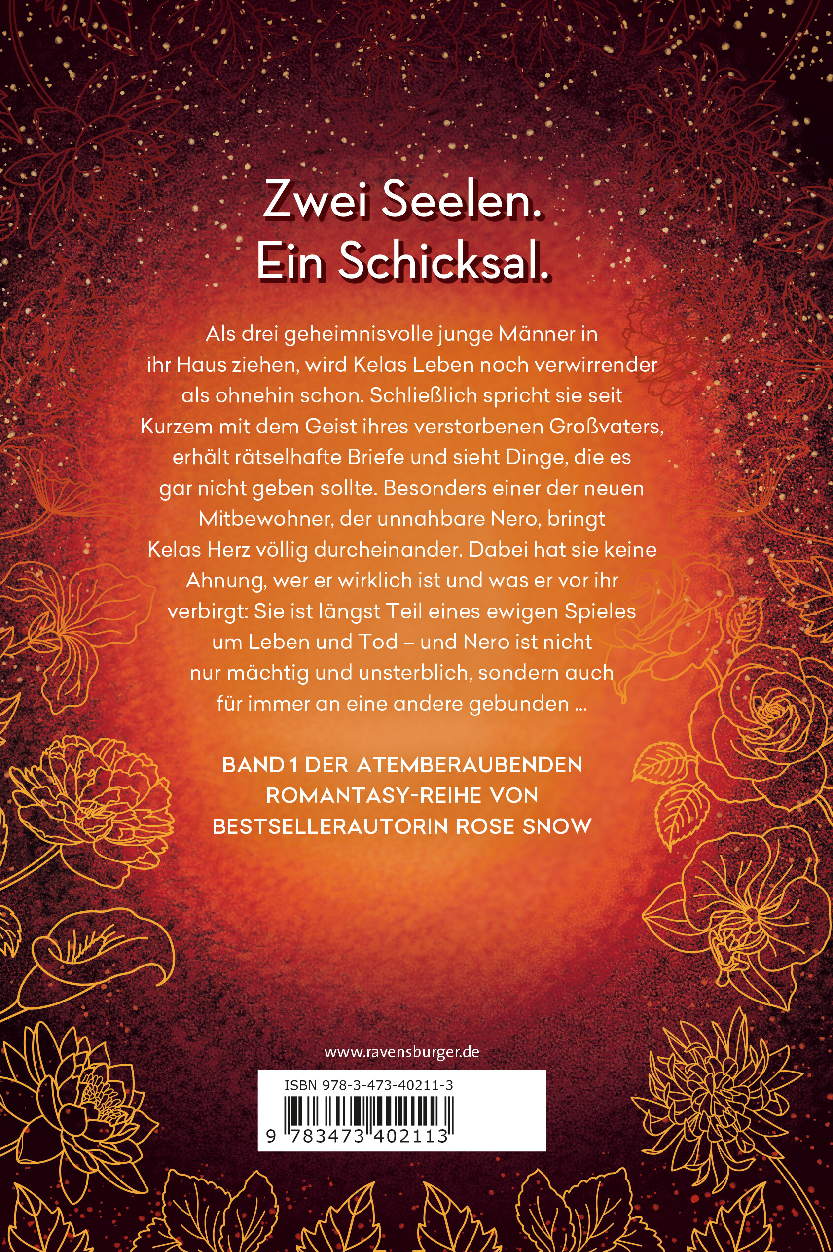Als drei geheimnisvolle junge Männer in ihr Haus ziehen, wird Kelas Leben noch verwirrender als ohnehin schon. Schließlich spricht sie seit Kurzem mit dem Geist ihres Großvaters und erhält rätselhafte Briefe. Besonders einer der neuen Mitbewohner, der unnahbare Nero, bringt Kelas Herz völlig durcheinander. Dabei hat sie keine Ahnung, was er vor ihr verbirgt: Sie ist längst Teil eines Spiels um Leben und Tod - und Nero ist nicht nur unsterblich, sondern auch für immer an eine andere gebunden ...