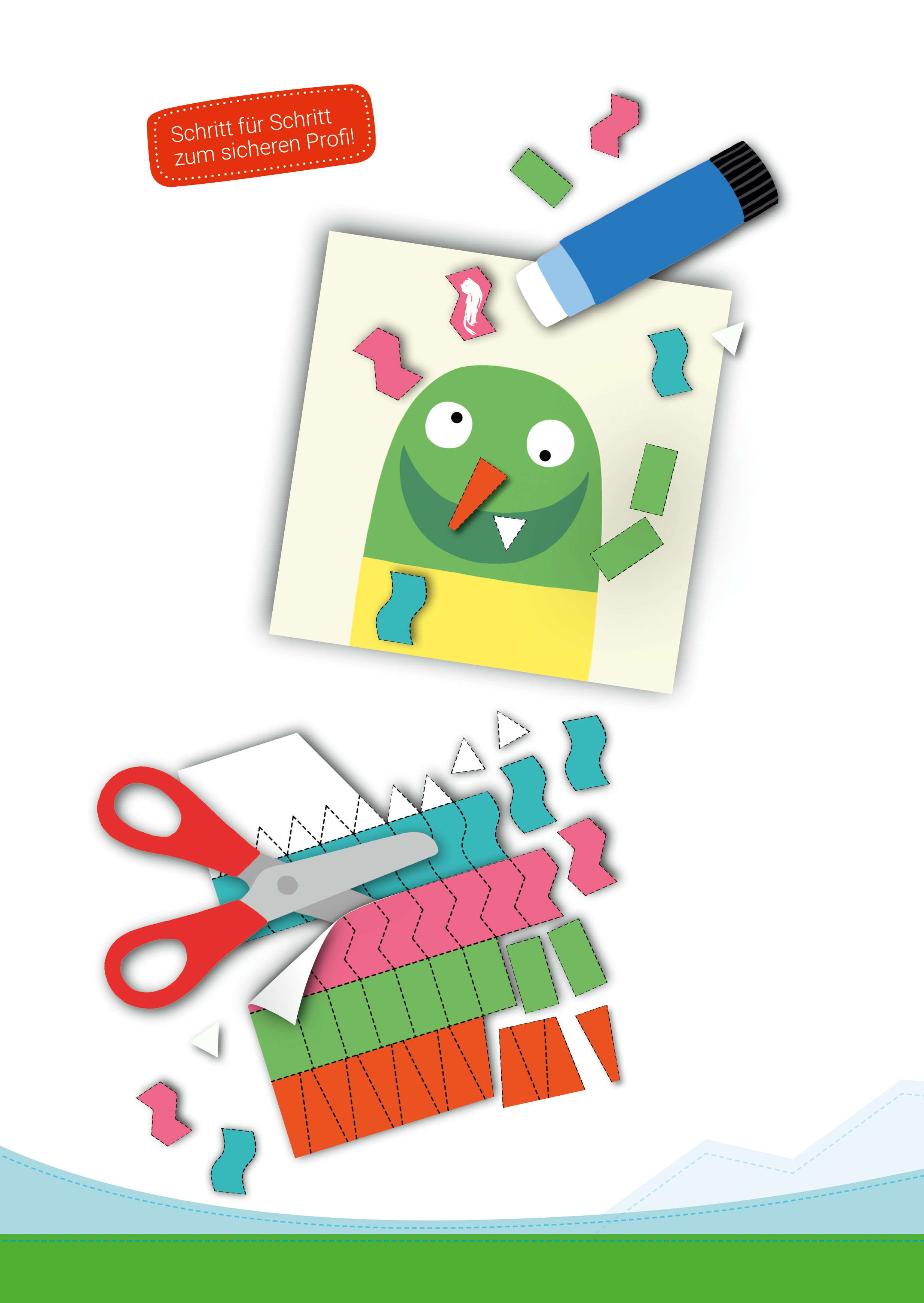 Schnipsel und Streifen schneiden, Einschneiden, Formen und Figuren ausschneiden - von Lektion zu Lektion trainieren die Kinder grundlegende Schneide-Fertigkeiten. Durch das Einkleben des Schnittmaterials auf die passend illustrierten Seiten haben sie ihren Fortschritt immer vor Augen. Und haben die Kinder eine Lektion beendet, werden sie mit einem tollen Sticker belohnt. So bleiben sie langfristig am Ball. Infos zu den Übungen und Tipps zum Umgang mit Schere und Kleber bieten den begleitenden Erwachsenen Hilfestellung. Wie wäre es mit einer leckeren Schnipsel-Pizza? Oder einer neuen Fransen-Frisur? Die lustigen Aufgaben machen nicht nur Spaß, es entstehen auch noch tolle Bilder. Diese können ganz leicht an der Perforation herausgetrennt und verschenkt werden. Und wurden alle Lektionen gemeistert, können die kleinen Scheren-Profis stolz ihre Profi-Urkunde präsentieren.
