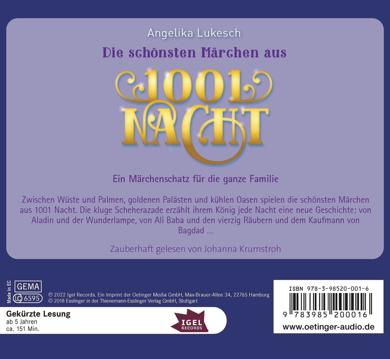 Schlagworte 1001 Nacht • Ali Baba • Dschinn • Fliegender Teppich • Kinderbuch ab 5 • Kinderbuch zum Vorlesen • Klassiker • Magie • Märchen • Morgenland • Multibox • Oase • Orient • Sagen • Scheherazade • Sesam • Sindbad • Sultan • Wunderlampe