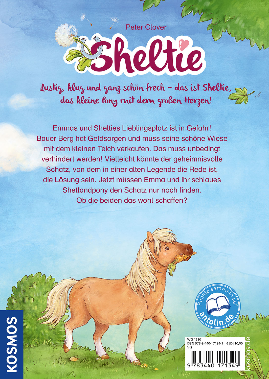 Lustige Pony-Abenteuer - viele bunte Bilder - einfach zu lesen!Oh nein: Bauer Berg muss seine Wiese verkaufen! Dann können Sheltie und Emma dort nicht mehr zum Ausreiten hin. Doch zum Glück findet Sheltie die Lösung in Form einer alten Schatzkarte. Ein lustiges Abenteuer mit Sheltie, dem klügsten und frechsten Pony der Welt!