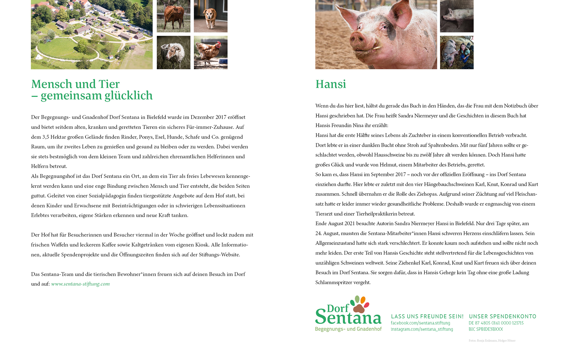 Mit dem Kauf dieses Buches unterstützt du die Tiere des Begegnungs- und Gnadenhofs Dorf Sentana und die sozialen Projekte vor Ort.