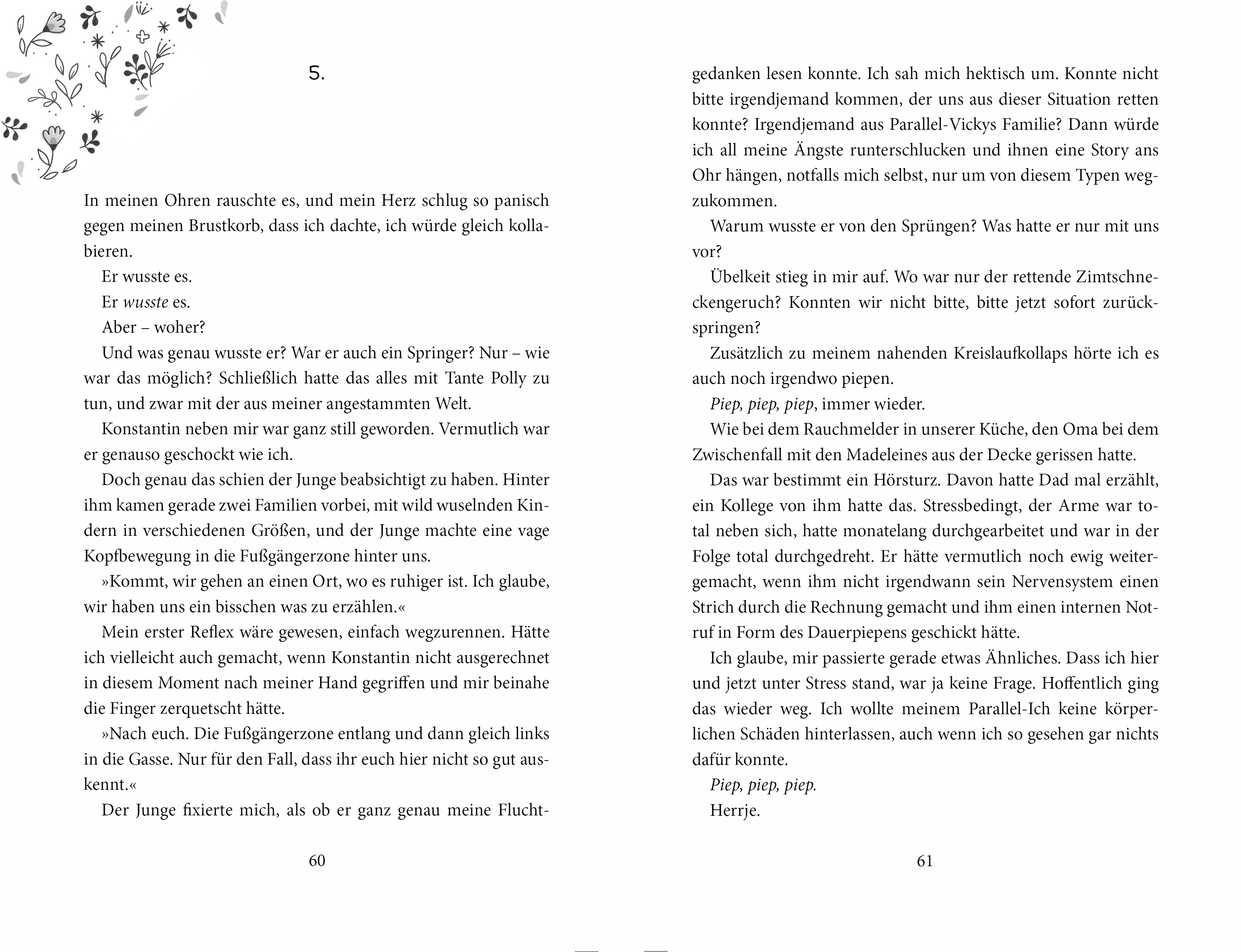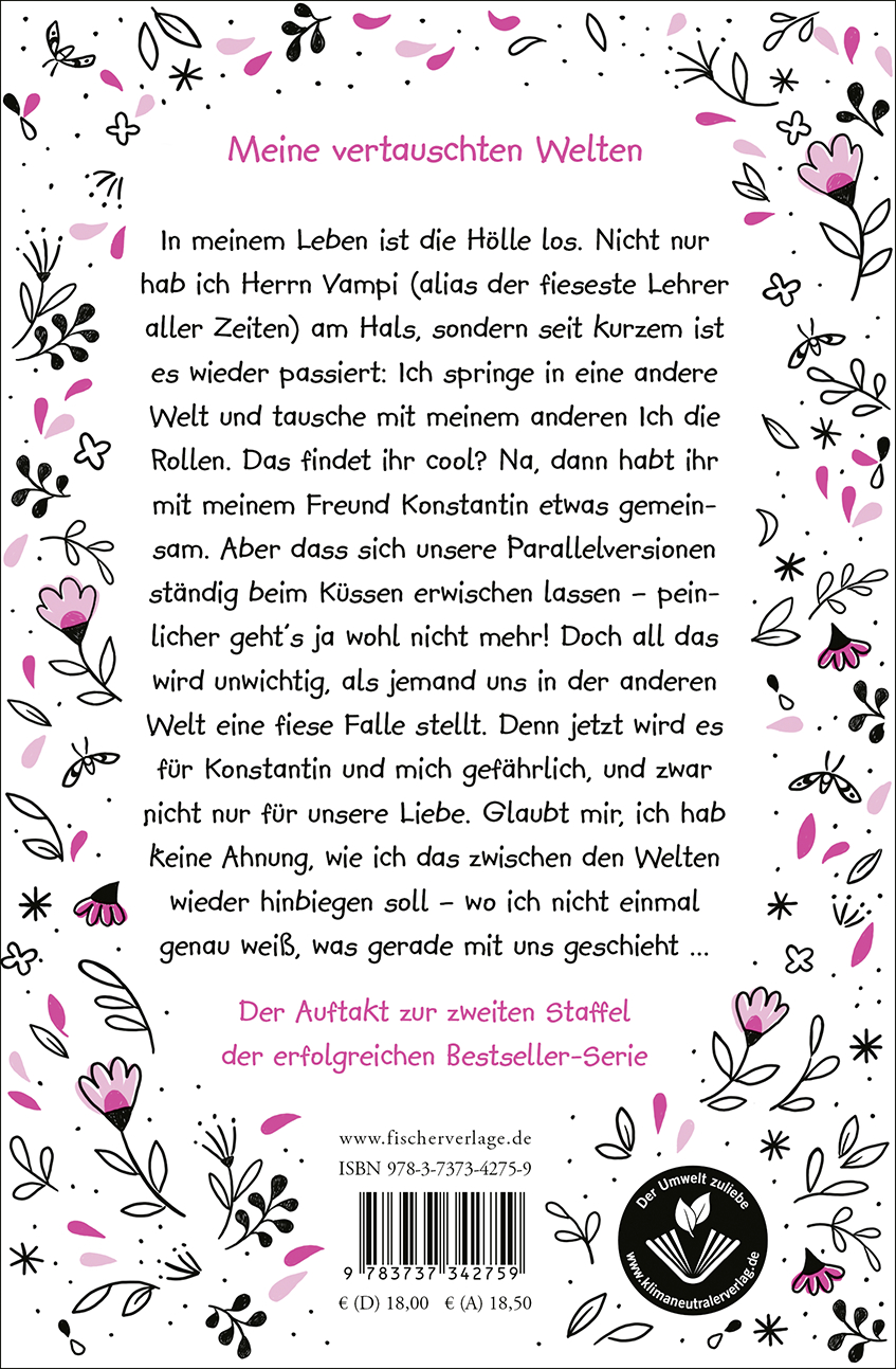 Vickys Leben wird von jetzt auf gleich durcheinandergewirbelt. Denn sie und ihr Freund Konstantin haben die einzigartige Gabe, in Parallelwelten zu wechseln. Oberstes Gebot dabei: Unauffällig bleiben! Doch wie soll das gehen, wenn sich ihre Doppelgänger beim heimlichen Knutschen erwischen lassen? Oder Parallelwelt-Oma fast die Küche von Mums Bed & Breakfast abfackelt? Noch während Vicky und Konstantin versuchen, das magische Chaos in den Griff zu bekommen, wird es für ihre Liebe gefährlich. Denn jemand stellt ihnen eine fiese Falle, und bald sind ihre Ausflüge in die Parallelwelt alles andere als Zuckerschlecken ...