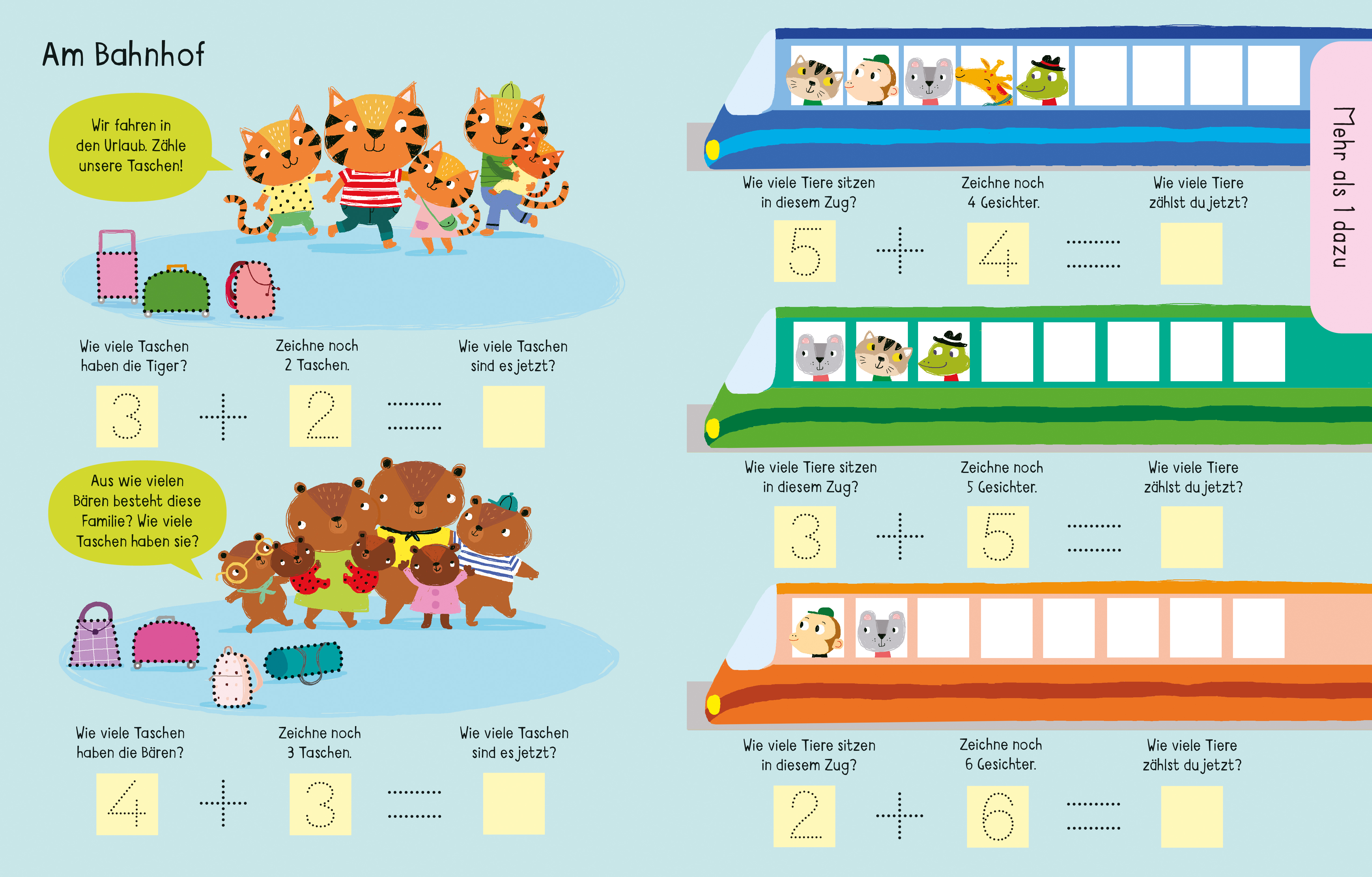 Dieses Buch führt Vorschulkinder spielerisch an Additions- und Subtraktionsaufgaben heran.
