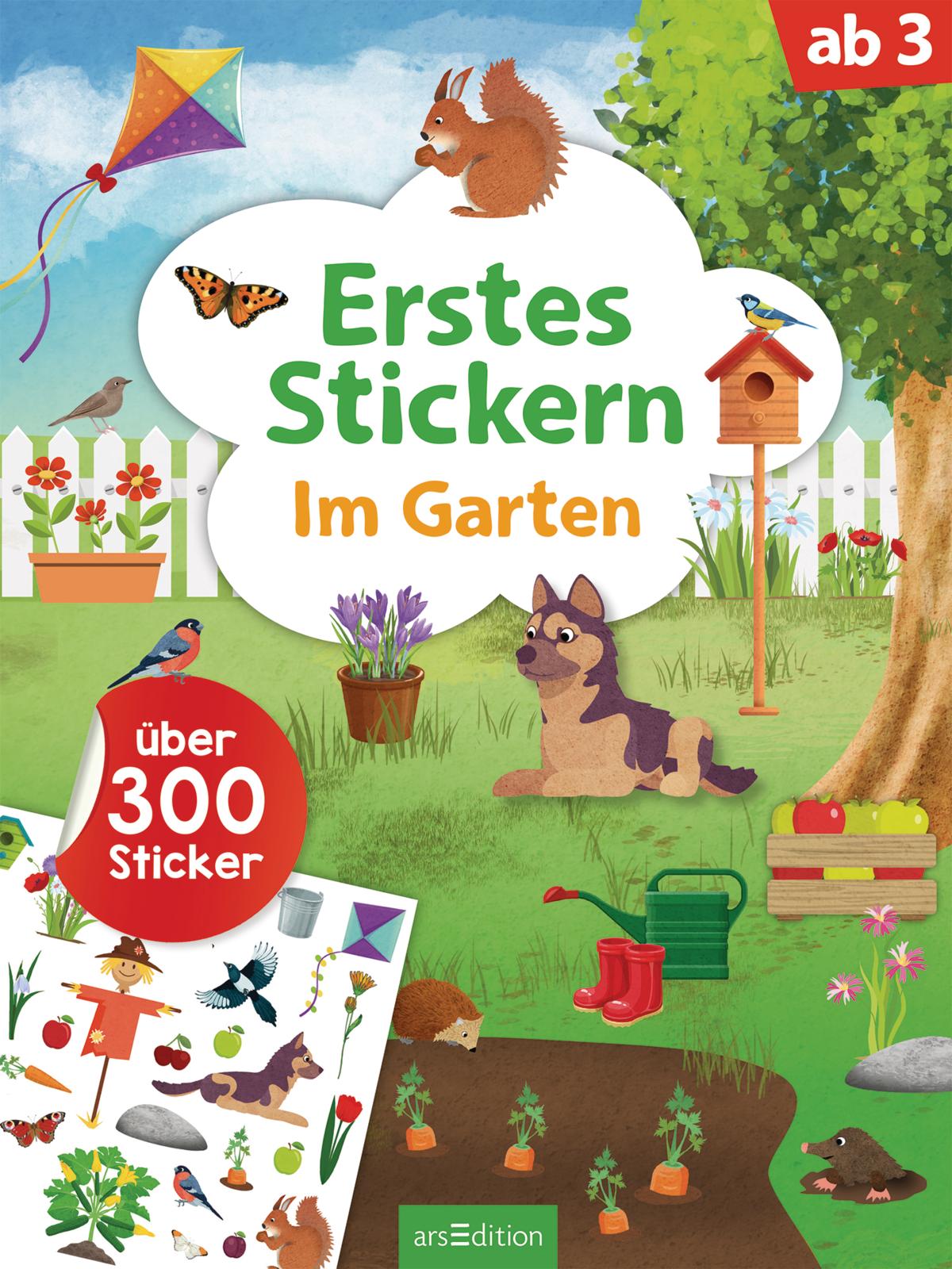 Entdecke die bunte und vielfältige Tier- und Pflanzenwelt im Garten! Ob im Gemüsegarten, am Teich, in den Baumwipfeln oder auf der Obstwiese: Spannende Szenen warten darauf, mit Vögeln, Blumen, Insekten, verschiedenen Gemüse- und Obstsorten und vielen anderen Tieren zum Leben erweckt zu werden. Über 300 Sticker garantieren einen Riesenklebespaß für kleine Hände ab 3 Jahren.