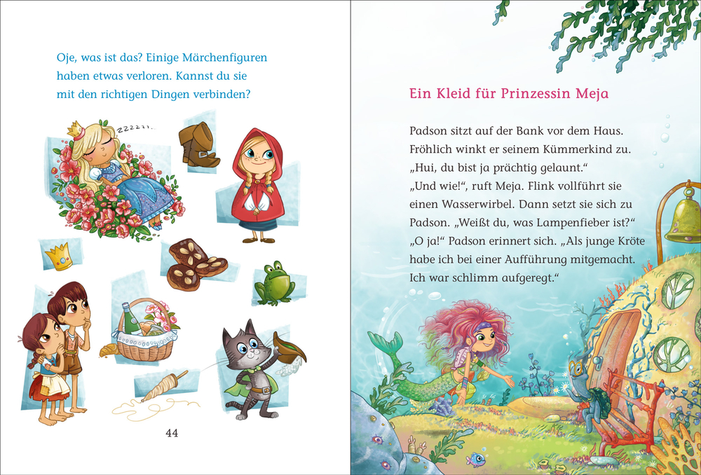 Neuer Schulspaß mit Meja Meergrün - Märchenhaft geht es zu in der Grundschule Muschelkiste. Denn die Lehrerin Frau Dotta plant eine Schulaufführung. Und ausgerechnet Meja Meergrün, die wildeste Nixe weit und breit, soll die Prinzessin spielen! Nach einigen turbulenten Proben und lustigen Pannen ist der große Tag gekommen: Die Aula der Schule füllt sich nach und nach ... und auf einmal wird Meja ganz flau im Bauch. So heftig, dass sie auf die Bühne purzelt und ihren Text vergisst. Ob die Aufführung dennoch ein Erfolg wird? Meja Meergrün für Leseanfänger - mit einfachen Sätzen, vielen bunten Illustrationen auf jeder Seite und lustigen Rätseln und Spielen nach jedem Kapitel