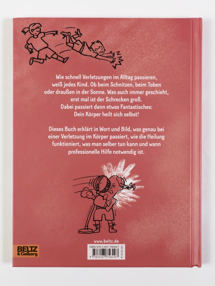 Kinder verletzen sich häufig, meist ist der Schrecken dann groß. Dabei können die allermeisten Körper etwas ganz Fantastisches: Egal, ob eine Schnittwunde, ein Veilchen oder ein Sonnenbrand - unsere Körper heilen sich in den meisten Fällen selbstständig (oder mit etwas Hilfe). Dazu stellen Kinder, ist der erste Schock mal überwunden, viele Fragen und nicht immer haben Erwachsene die richtigen Antworten parat. Dieses Buch greift alltägliche Unfallsituationen in leicht zugänglicher Comicform auf und erklärt in Wort und Bild, wie der körperliche Heilungsprozess funktioniert, wie man Wunden oder Verletzungen behandelt und wann man besser den Arzt oder sogar das Krankenhaus aufsuchen sollte. Ein Buch für jede Lebenslage, das immer eine Antwort bietet.