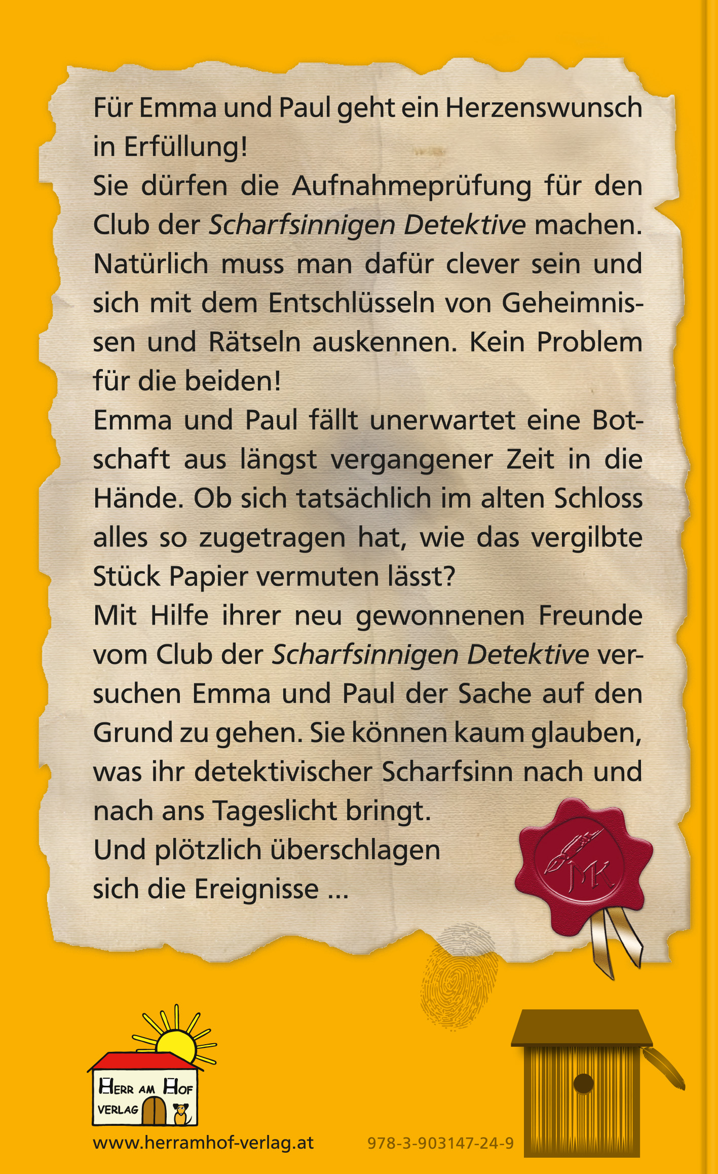 Für Emma und Paul geht ein Herzenswunsch in Erfüllung! Sie dürfen die Aufnahmeprüfung für den Club der "Scharfsinnigen Detektive" machen. Natürlich muss man dafür clever sein und sich mit dem Entschlüsseln von Geheimnissen und Rätseln auskennen. Kein Problem für die beiden!