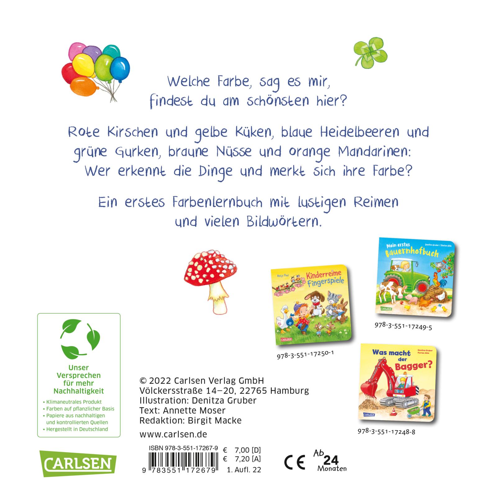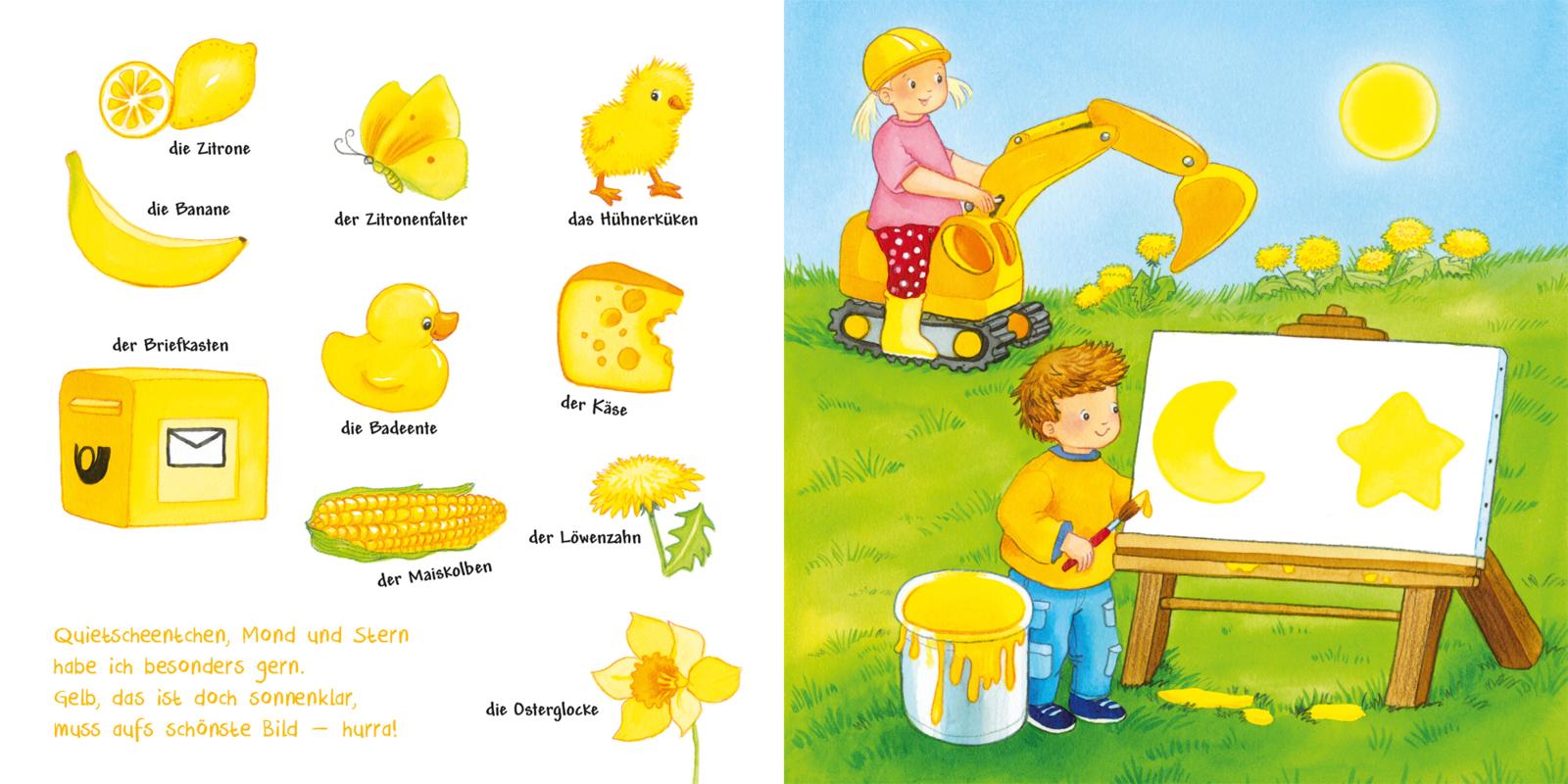 Erstes Farbenlernbuch mit lustigen Reimen und vielen Bildwörtern.
