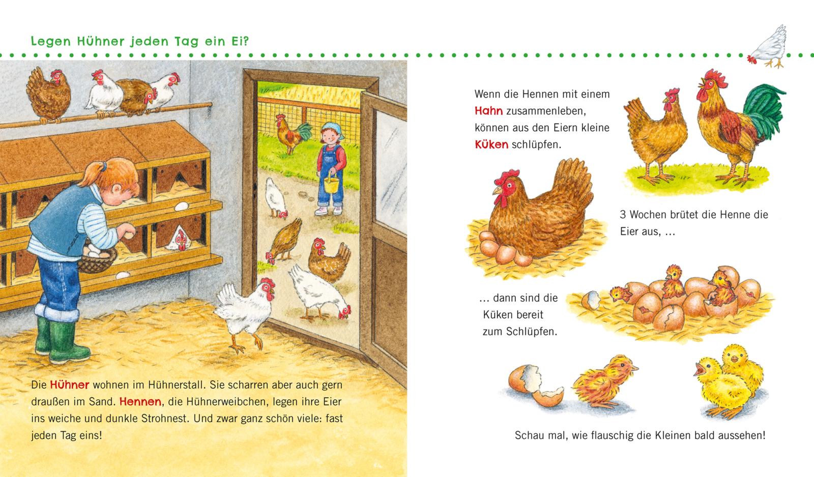 Komm, wir schauen uns auf dem Bauernhof um: Woher kommt die Milch? Was macht der Mähdrescher auf dem Feld? Und wie schlüpfen eigentlich die kleinen Hühnerküken?