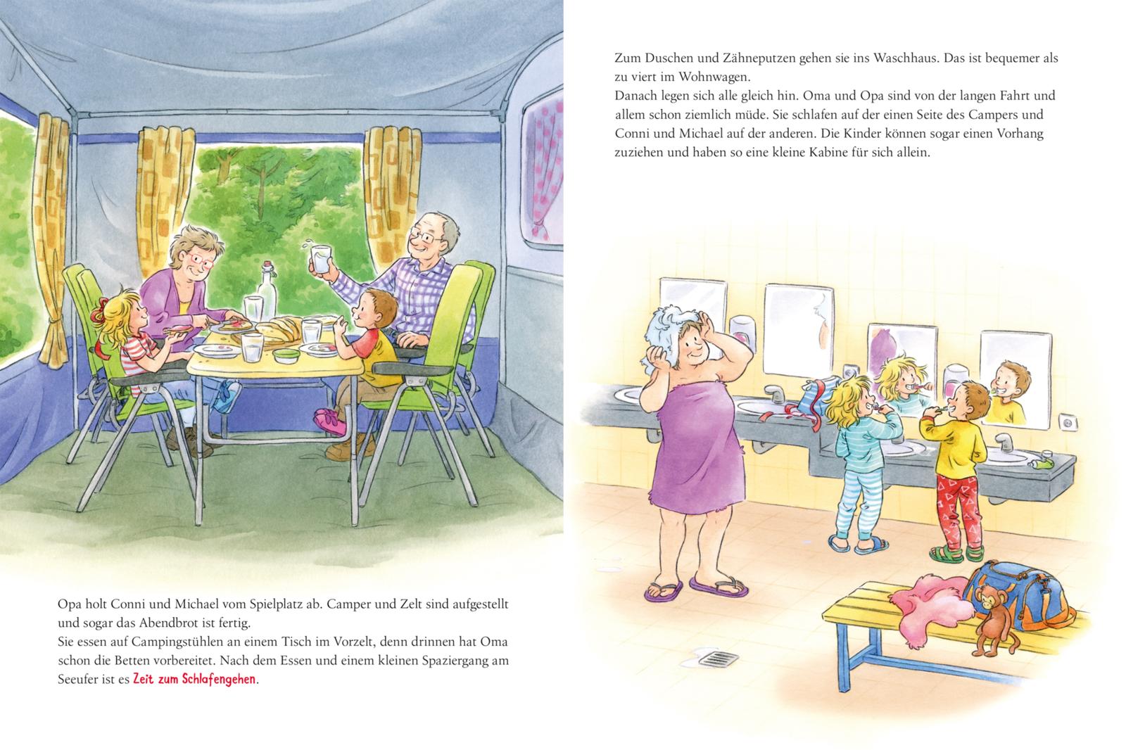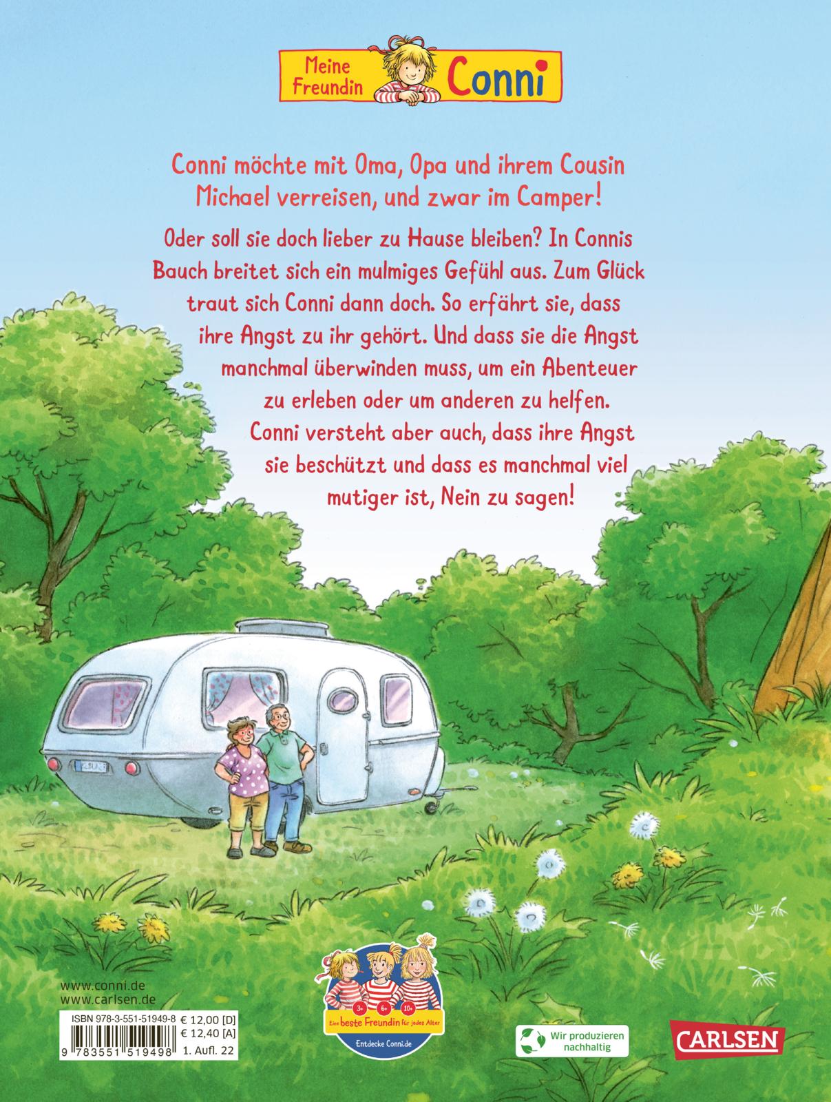 Conni darf mit Oma, Opa und ihrem Cousin Michael verreisen. Mit dem Camper - wie aufregend! Conni freut sich wirklich sehr, aber zugleich ist ihr etwas mulmig zumute.
