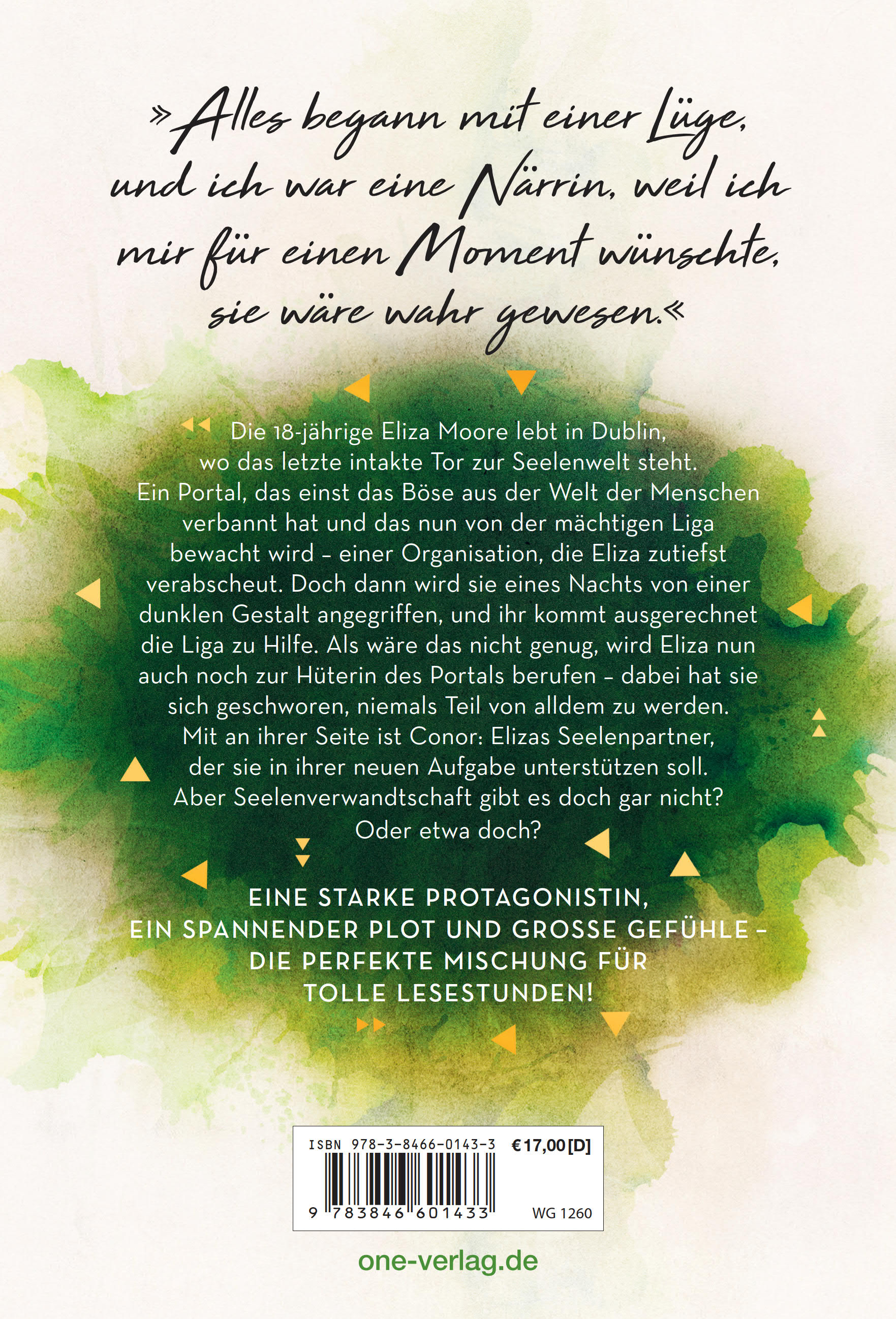 Die 17-jährige Eliza Moore lebt in Dublin, wo das letzte intakte Tor zur Seelenwelt steht. Ein Portal, das das Böse aus der Welt der Menschen aussperrt, um sie vor den seelenfressenden Sluagh zu schützen. Als Eliza unerwartet zur Hüterin des Portals berufen wird, ist sie alles andere als begeistert. Nie wieder wollte sie etwas mit der mächtigen Liga zu tun haben, die ihr in der Vergangenheit schon so viel genommen hat. Doch ihr bleibt keine Wahl, und Elizas bisher so normales Leben gerät aus den Fugen. Nicht zuletzt, weil ihr zur Erfüllung ihrer Aufgabe jemand an die Seite gestellt wird, der sie nicht nur belogen hat, sondern auch noch ihr Seelenverwandter sein soll ...