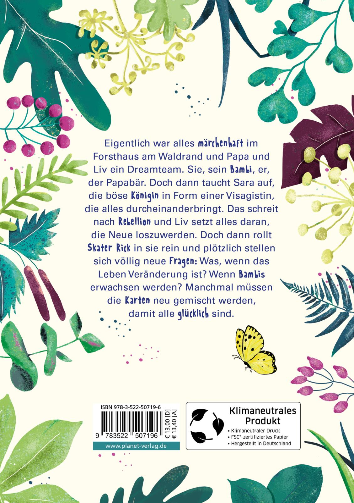 Eigentlich war alles märchenhaft im Forsthaus am Waldrand und Papa und Liv ein Dreamteam. Sie, sein Bambi, er, der Papabär. Doch dann taucht Sara auf, die böse Königin in Form einer Visagistin, die alles durcheinanderbringt. Das schreit nach Rebellion und Liv setzt alles daran, die Neue loszuwerden. Doch dann rollt Skater Rick in sie rein und plötzlich stellen sich völlig neue Fragen: Was, wenn das Leben Veränderung ist? Wenn Bambis erwachsen werden? Manchmal müssen die Karten neu gemischt werden, damit alle glücklich sind.