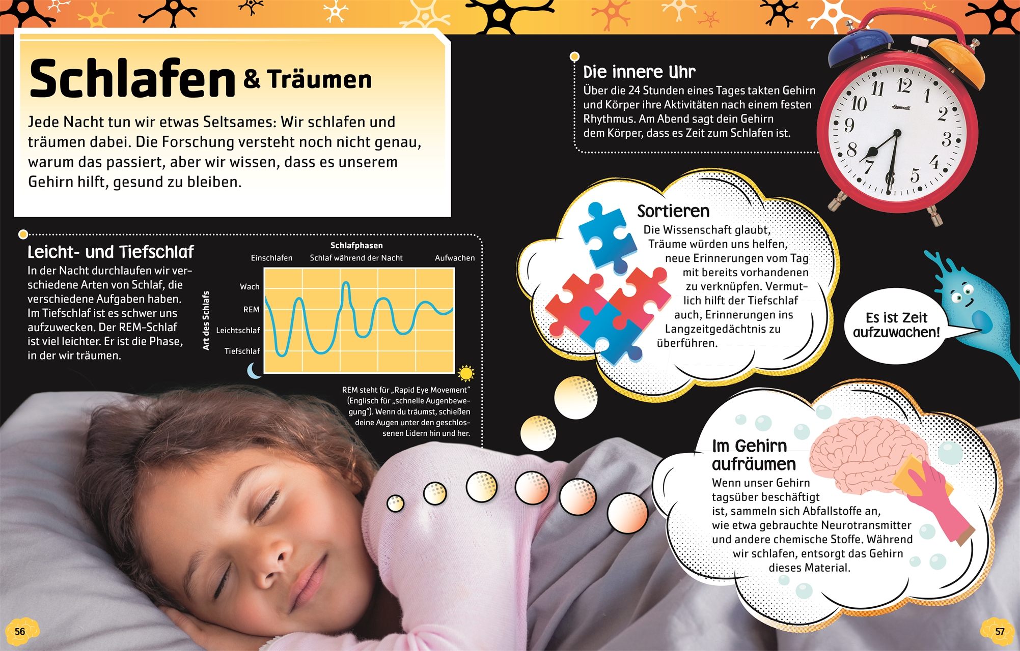 Denken, sehen, fühlen, uns bewegen und erinnern all das können wir dank unseres Gehirns. Dieses Sachbuch liefert Kindern ab 8 Jahren altersgerechtes Wissen zu diesem erstaunlichen Organ. Es erklärt u.a. den Aufbau des Gehirns, woher es weiß, dass wir hungrig sind oder frieren, und warum Gerüche Erinnerungen wecken können. Nervenzelle und Synapse führen als witzige Comicfiguren durchs Buch und machen zusammen mit Grafiken und Fotos das Thema leicht zugänglich und ausgesprochen anschaulich.