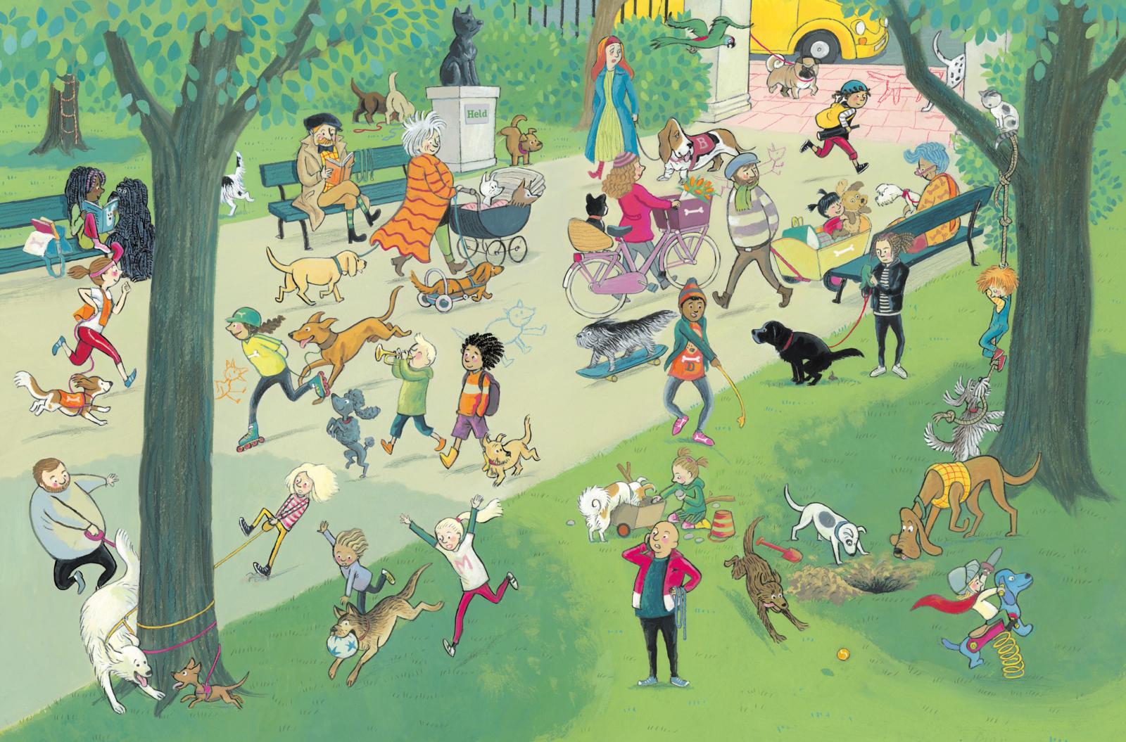 "Die Seiten dieses Wimmelbuchs sind so voller Action, dass man zu Beginn erst einmal 'WOW' sagen muss, um sich dann gleich hinein ins Vergnügen zu stürzen. Zahllose Hunde, Katzen und Menschen wollen betrachtet werden und laden dazu ein, sich Geschichten über sie zu überlegen."