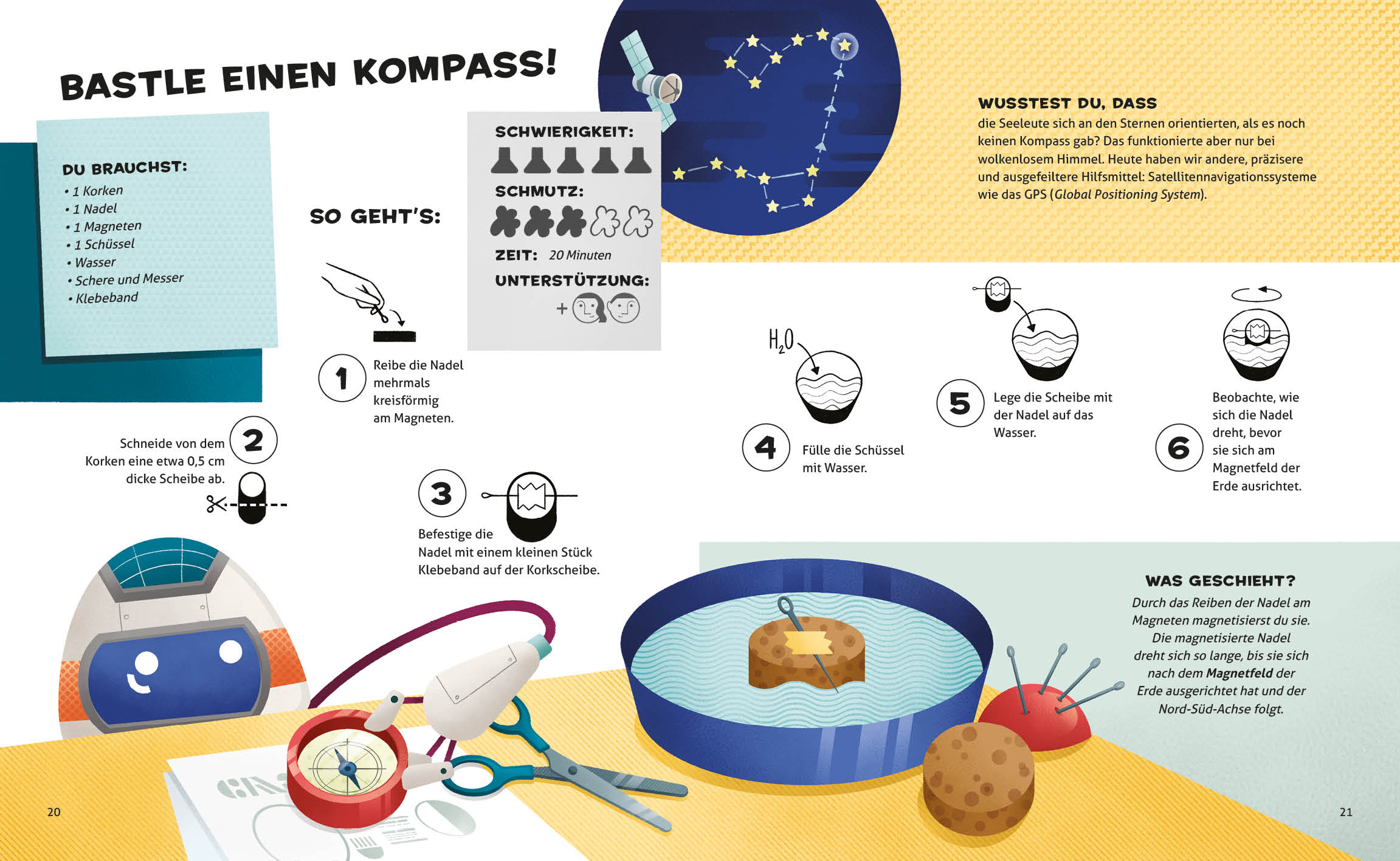 Die wissenschaftliche ArbeitsweiseSicherheit zuerst!Eine besondere KraftAngezogen und nicht angezogenFliegende RaumschiffeNatürlich magnetischWir magnetisieren Magnetischer Antrieb(Die Pole eines Magneten) Wir leben auf einem gigantischen MagnetenDas unsichtbare sehen Lernen Sie, wie man einen Kompass benutztOrientiere dich mit einem KompassEinen Kompass bastelnNutze die Kraft Blitze fangenDas ElektronenmikroskopEs war einmal eine BatterieStrom im AlltagWir bauen einen SchaltkreisLeiter und IsolatorenStrom läuft!Weiche Stromkreise (Textilien)Der Aufstieg des ElektromagnetismusEin Handy und ein KompassEin Magnet und eine DrahtspuleEin einfacher ElektromotorNicht anfassen!Glossar