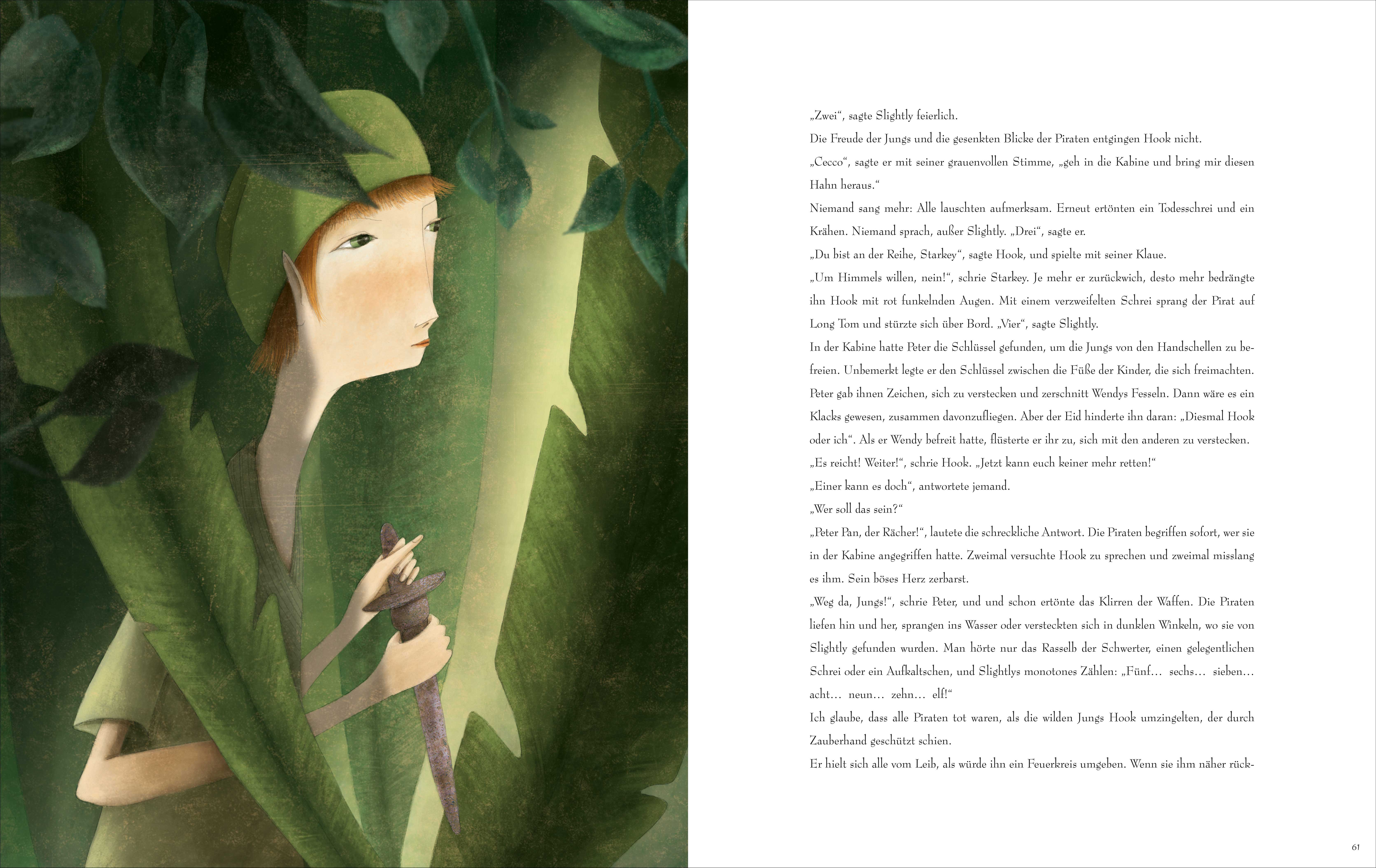 Auf der Suche nach seinem Schatten fliegt Peter Pan in das Kinderzimmer von Wendy, John und Michael Darling und eine weltberühmte Reise nimmt ihren Lauf. Peter Pan - das ist der ewige Bengel, der niemals erwachsen wird. Seit seinem Debüt 1911 hat er Jungen und Mädchen in das magische, wunderbare Nimmerland gebracht. Es ist ein Flug, den alle Kinder machen wollen und mit dieser modern illustrierten, leicht lesbaren Version des Klassikers kann jeder "zweite nach rechts und geradeaus bis zum Morgen" mit Peter fliegen. Zusammen mit den Darling-Kindern treffen die kleinen Leser die Fee Tinkerbell, die verlorenen Jungs, den bedrohlichen Captain Hook und erleben die unglaublichsten Abenteuer.