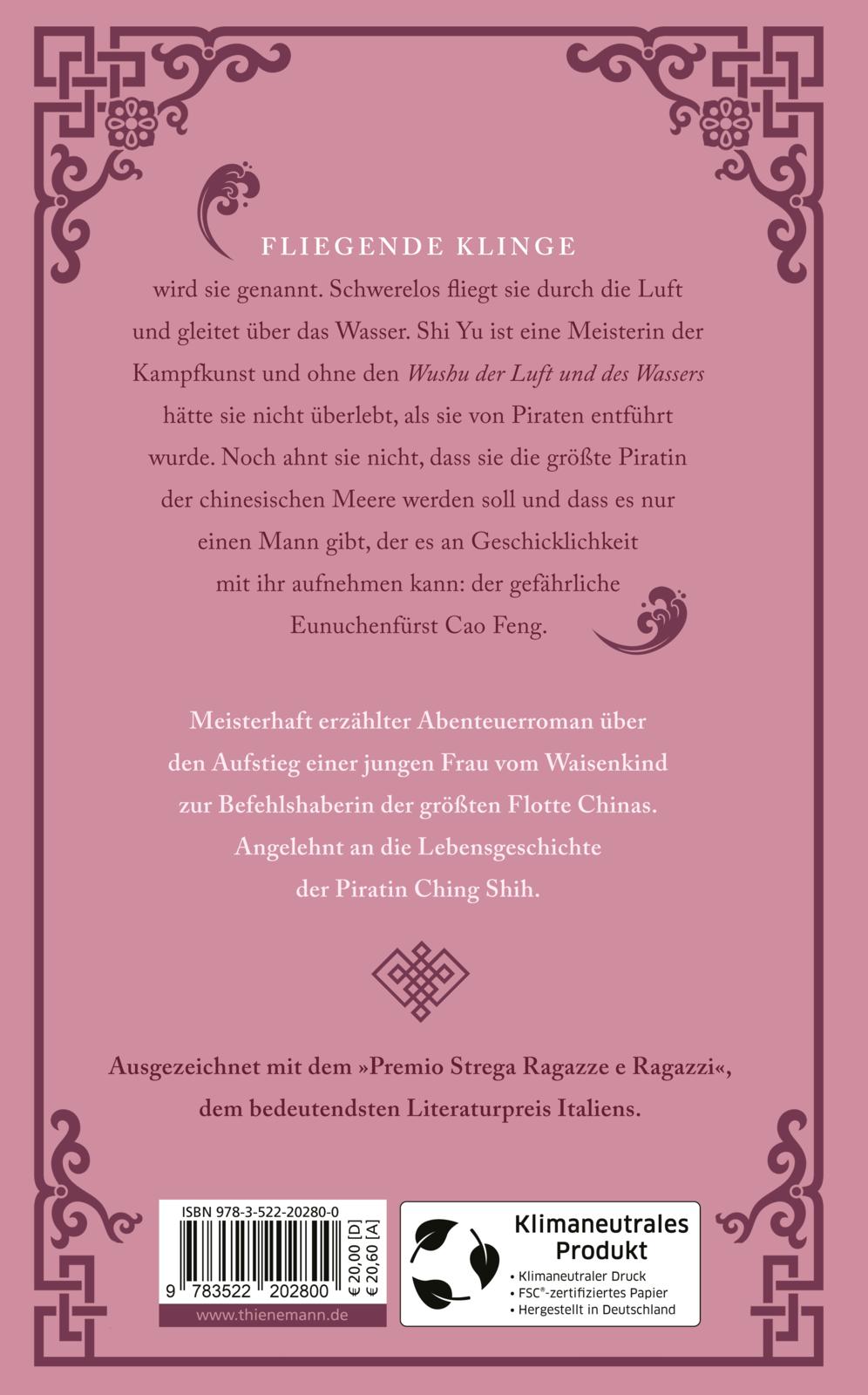 Fliegende Klinge wird sie genannt. Schwerelos fliegt sie durch die Luft und gleitet über das Wasser. Shi Yu ist eine Meisterin der Kampfkunst. Ohne den Wushu der Luft und des Wassers hätte sie nicht überlebt, als sie von Piraten entführt wurde. Noch ahnt sie nicht, dass sie die größte Piratin der chinesischen Meere werden soll und dass es nur einen Mann gibt, der es an Geschicklichkeit mit ihr aufnehmen kann: der gefährliche Eunuchenfürst Cao Feng.