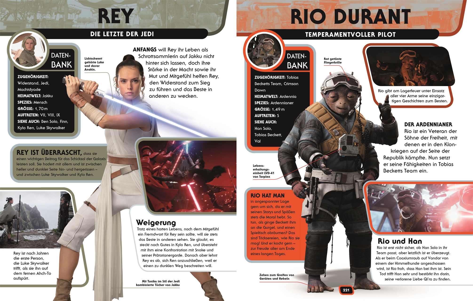 "Insgesamt erhält man so nun ein umfassendes Nachschlagewerk für Fans aller Altersklassen mit unterhaltsamen Fakten und spannenden Informationen zu mehr als 275 Helden, Schurken und Droiden der Star Wars-Galaxis – und die Antwort auf die Frage: Wie groß ist eigentlich Grogu?!