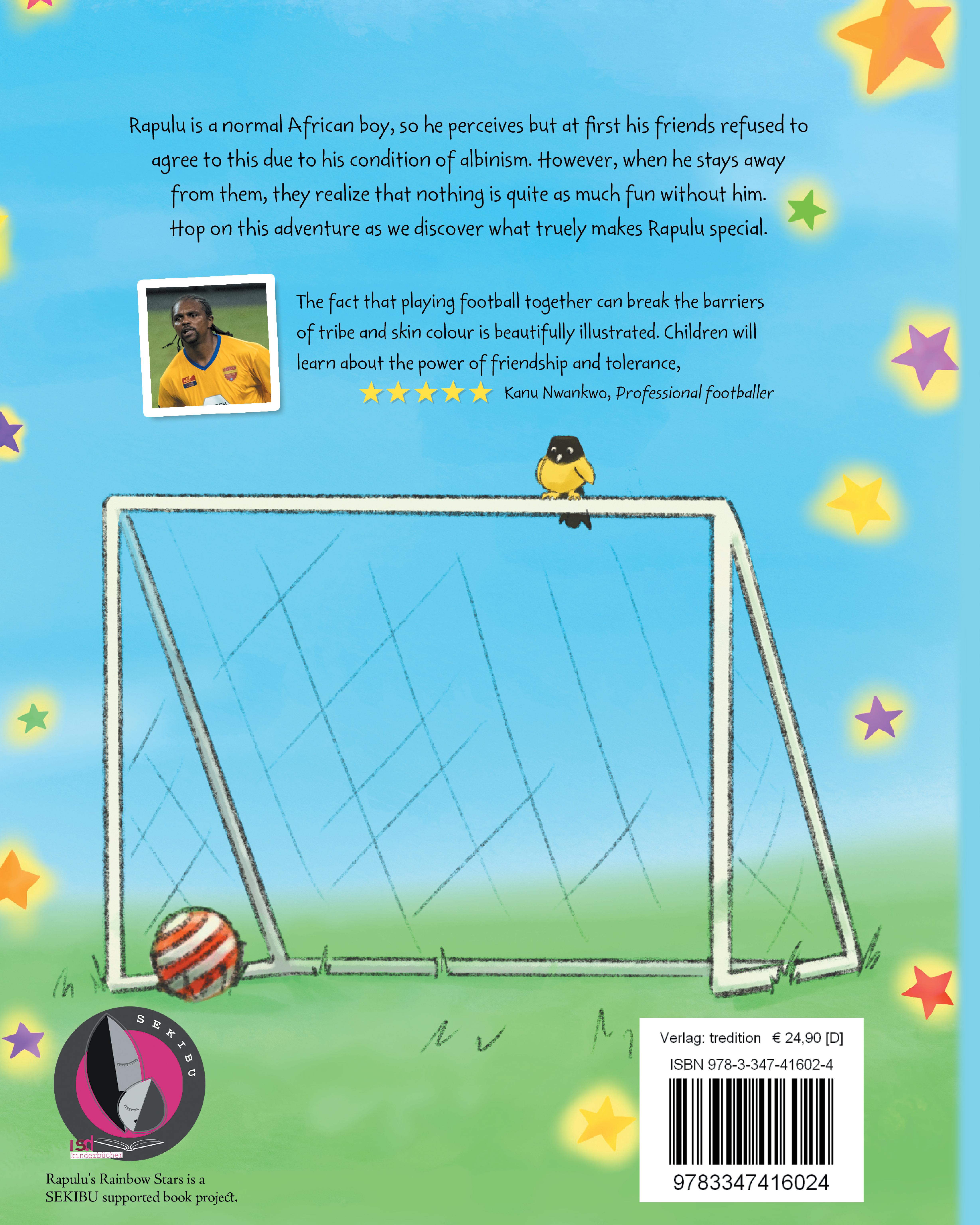 Rapulu has Albinism, still he sees himself as a normal African boy. His friends who mocked him in school later missed him when he stayed away. Join his friends in this story as they discover what really makes Rapulu special and that we are all the same on the inside.