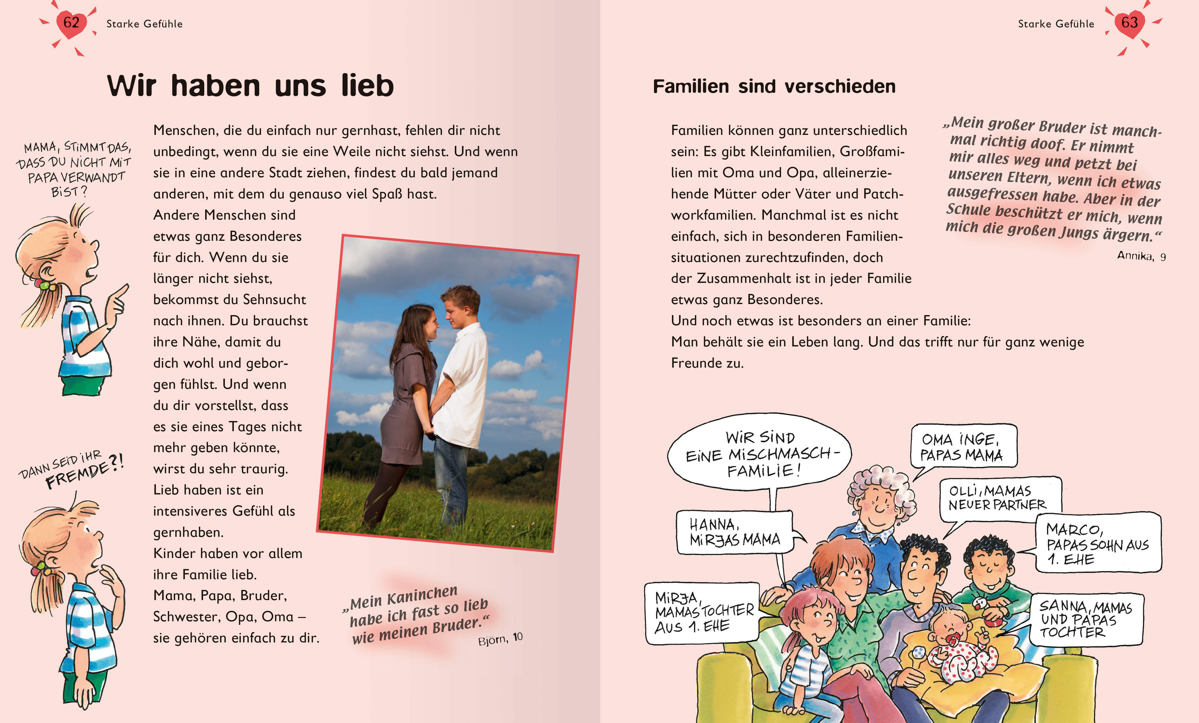 Kinder wollen schon früh Genaueres über sich und ihren Körper wissen. In diesem Aufklärungsbuch erhalten sie Antworten auf ihre Fragen über Mädchen und Jungen, die Pubertät, Körper und Gefühle, Liebe, Sexualität, Schwangerschaft und Geburt, Wachsen und Erwachsen werden. Die einfühlsamen Texte machen es Kindern leicht, Sexualität und Gefühle zu verstehen und in ihr Leben einzuordnen. Für Eltern bieten sie die Chance, über das Thema Aufklärung gelassen und humorvoll mit ihrem Kind zu sprechen.