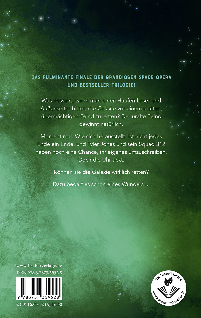 | Schlagworte | 2380 • Action Abenteuer Romance Young Adult Jugendbücher • Action & Adventure • actiongeladenen Space Opera mit Humor • Alexander Gerst • All Age • All-Age • amie kaufman and jay kristoff books • Aurora Academy • Aurora Cycle Aurora erleuchtet Aurora entflammt • Aurora's End • Außenseiter Heldengeschichte • Bestseller Spiegel Bestseller Bestsellerautorin Bestsellerautor • Diversity • Douglas Adams • Dystopie • Fans von Illuminae Files • Fans von Illuminae Illuminae Files • fremde Galaxien • Guardians of the Galaxy • Guardians of the Galaxy Star Wars Star Trek Stargate • Internationaler Tag der bemannten Raumfahrt • Jay Kristoff Amie Kaufman neues Buch Neuerscheinung • Jugendbücher Jugendbuch ab 14 vierzehn Jahre Jahren Jährige • lustige Science Fiction für Jugendliche • NYT Bestseller • Raumschiff • Science Fiction Space Opera Dystopie Bücher Jugendliche • SciFi Jugendliche • Space Opera • Space Opera Jugendbuch • Space X • spiegel bestseller • Spiegel Bestseller-Autoren • Spiegel-Bestseller Jugenbuch • squad • Star Trek • Star Wars • The Aurora Cycle • Thriller Jugendthriller ab vierzehn 14 Jahre Jahren Jährige • Tyler Jones • Unterhaltung • Weltraumabenteuer • Weltraum Weltall Galaxien Raumschiff Roboter Androiden • Young Adult Science Fiction Action Romance Thriller • Zukunft |