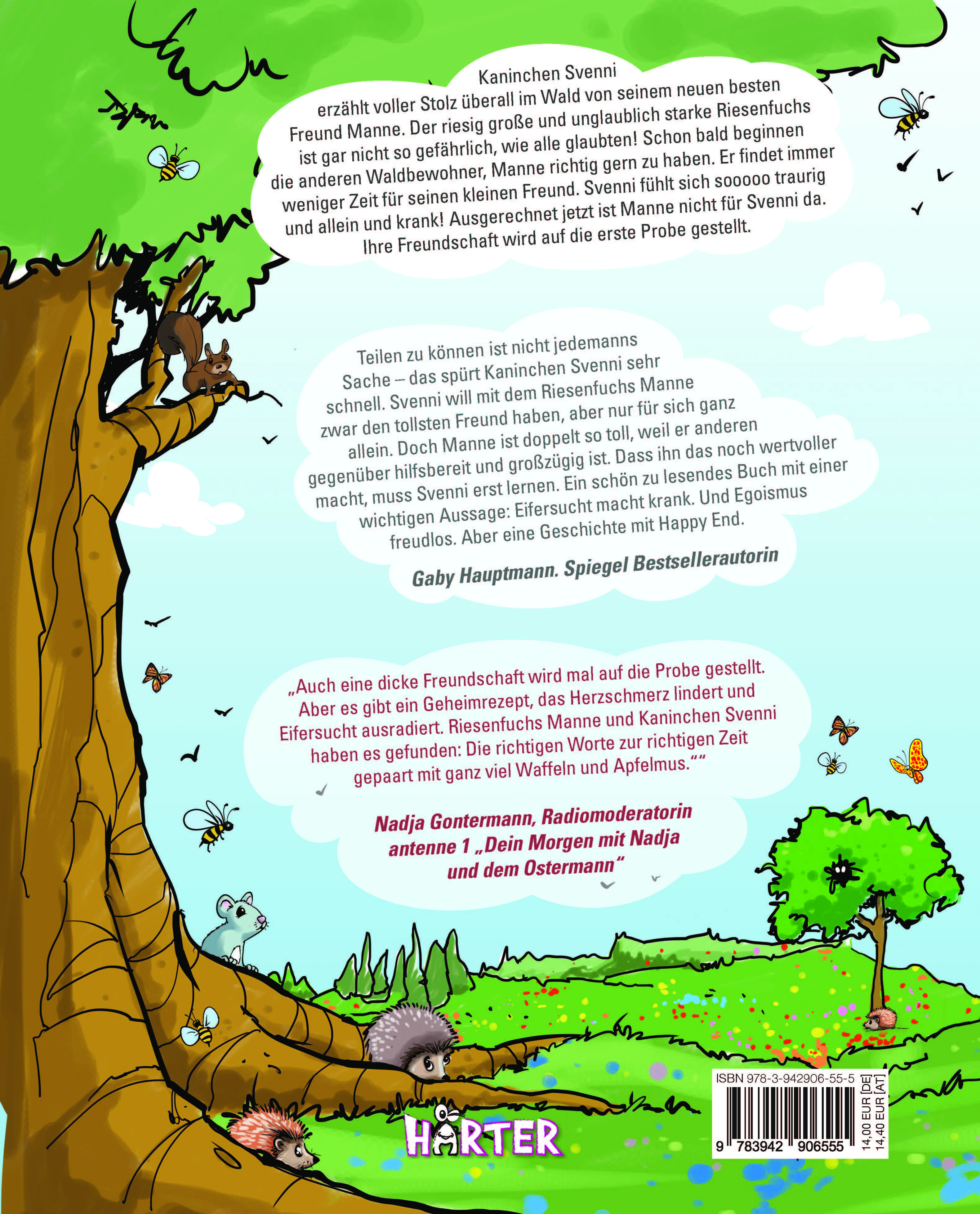 "Teilen zu können ist nicht jedermanns Sache – das spürt Kaninchen Svenni sehr schnell. Svenni will mit dem Riesenfuchs Manne zwar den tollsten Freund haben, aber nur für sich ganz allein. Doch Manne ist doppelt so toll, weil er anderen gegenüber hilfsbereit und großzügig ist. Dass ihn das noch wertvoller macht, muss Svenni erst lernen.