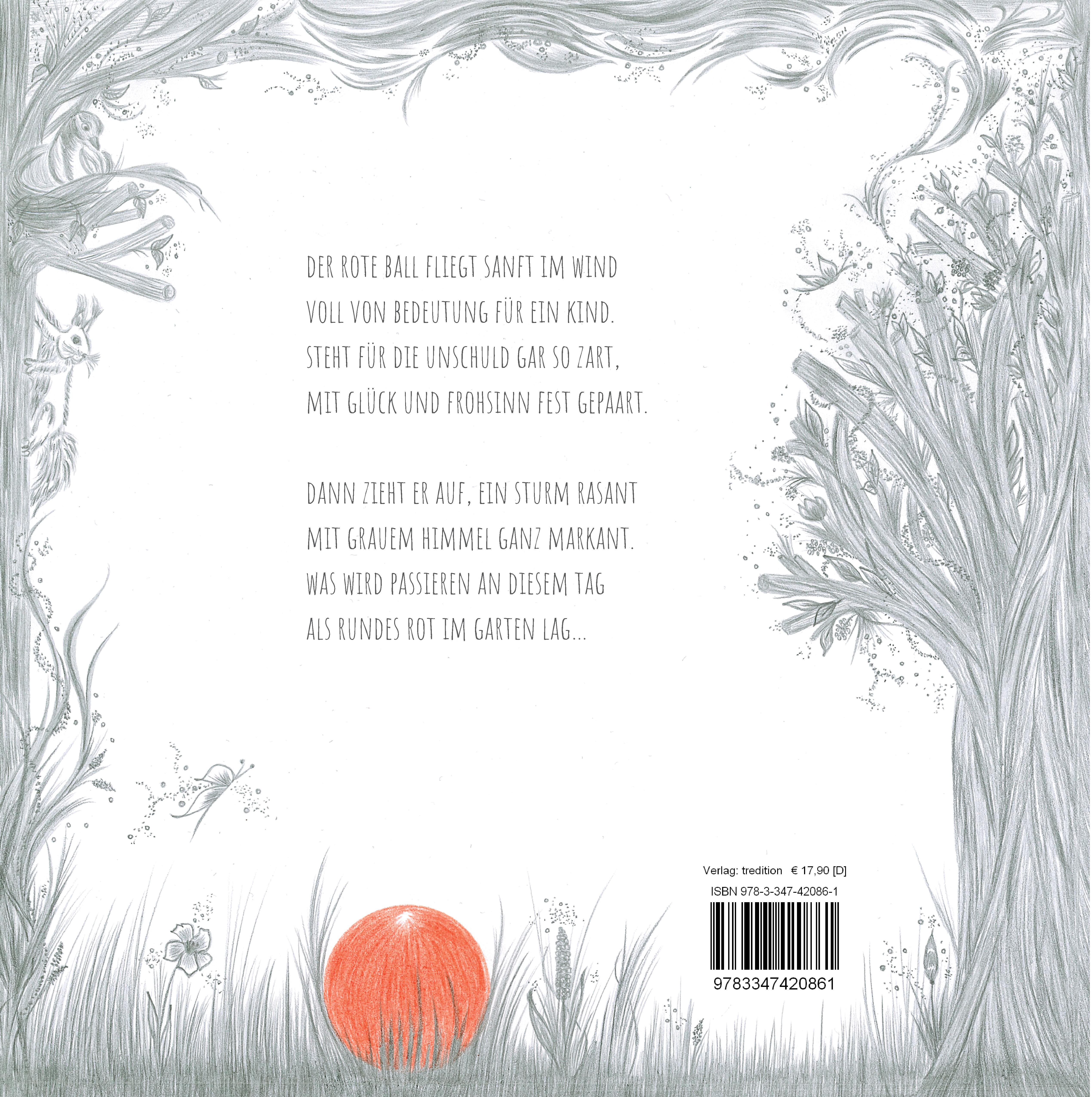 Der rote Ball fliegt sanft im Wind , voll von Bedeutung für ein Kind. Steht für die Unschuld gar so zart, mit Glück und Frohsinn fest gepaart. Dann zieht er auf, ein Sturm rasant, mit grauem Himmel ganz markant. Was wird passieren an diesem Tag als rundes Rot im Garten lag...Emmis roter Ball ist eine Geschichte voller Symbolik. Es geht um Angst, Verlust, Unschuld und die Erkenntnis, dass auch nach einem Sturm die Sonne wieder zurückkommen wird.