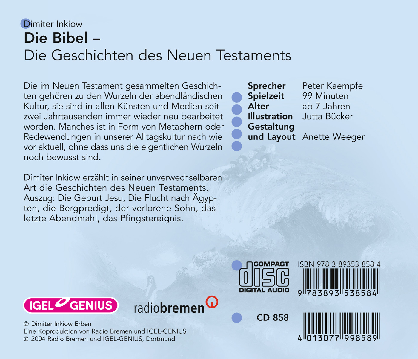 | Schlagworte | Audio-CD • AUDIO/Kinder- und Jugendbücher/Kinderbücher bis 11 Jahre • Bibel • Biblische Geschichten; Kinder-/Jugendliteratur • Biblische Geschichten; Kinder-/Jugendliteratur (Audio-CDs) • Gott • Hörbücher • Hörbuch für Kinder/Jugendliche • Hörbuch für Kinder/Jugendliche (Audio-CD) • Hörbuch; Lesung für Kinder/Jugendliche • Kinder-CDs (Audio) • Neues Testament |