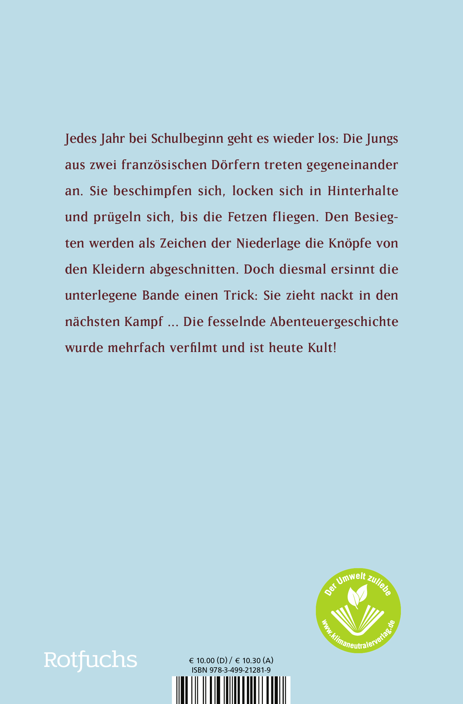 lt;p>Jedes Jahr bei Schulbeginn geht es wieder los: Die Jungs aus zwei französischen Dörfern treten gegeneinander an. Sie beschimpfen sich, locken sich in Hinterhalte und prügeln sich, bis die Fetzen fliegen. Den Besiegten werden als Zeichen der Niederlage die Knöpfe von den Kleidern abgeschnitten. Doch diesmal ersinnt die unterlegene Bande einen Trick: Sie zieht nackt in den nächsten Kampf ... Die fesselnde Abenteuergeschichte wurde mehrfach verfilmt und ist heute Kult!
