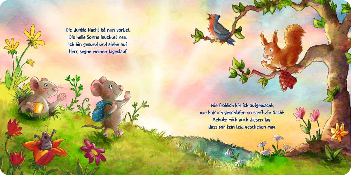 Kindgerechte kurze Verse laden zum Mitsprechen und Mitbeten ein.