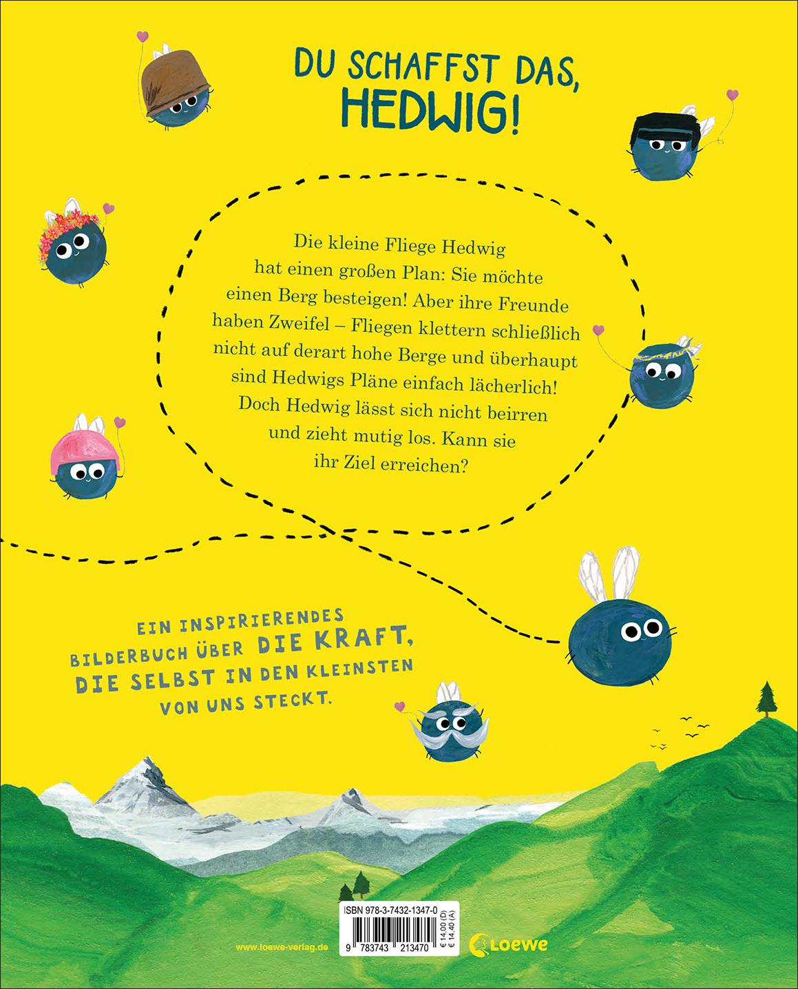 Die kleine Fliege Hedwig hat große Pläne: Sie möchte einen Berg besteigen! Voller Tatendrang bereitet sie sich auf ihr Abenteuer vor. Aber ihre Freunde haben Zweifel - Fliegen klettern schließlich nicht auf derart hohe Berge und überhaupt sind Hedwigs Pläne einfach lächerlich! Doch Hedwig lässt sich nicht beirren und zieht mutig los. Kann sie ihr Ziel erreichen?