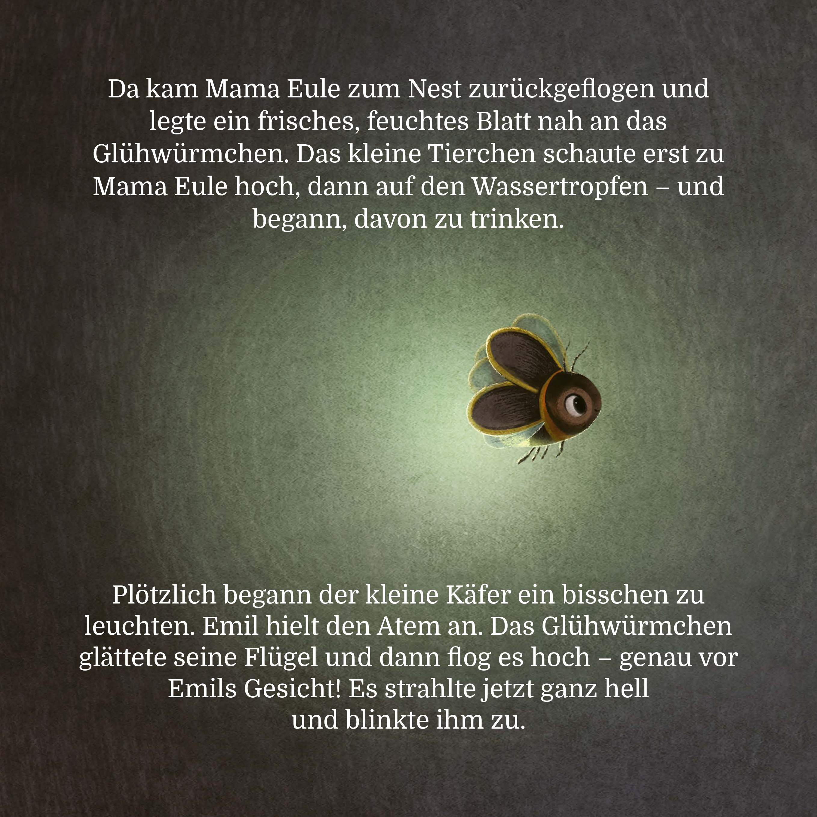 Emil Eule entdeckt eines Abends in seinem Nest ein Glühwürmchen. Der kleine Blinky wird sein neuer Freund - und Emil ist glücklich. Eines Tages wacht der kleine Eulenjunge auf und erschrickt: Das Glühwürmchen ist weg! "Mama, warum hat Gott nichts gemacht, als Blinky einfach so verschwunden ist? Wusste Gott denn nicht, wie sehr ich Blinky lieb habe?" "Mein kleiner Emil, Gott verhindert nicht immer, dass Dinge passieren, die uns traurig machen. Aber er verspricht uns, dass er immer ganz nah bei uns ist."Ein wunderbares und tröstliches Bilderbuch, das hilft, mit Verlusterfahrungen umzugehen und das vermittelt: Gott ist da. Er wird dich niemals verlassen. Ideal für Kinder ab 3 Jahren.