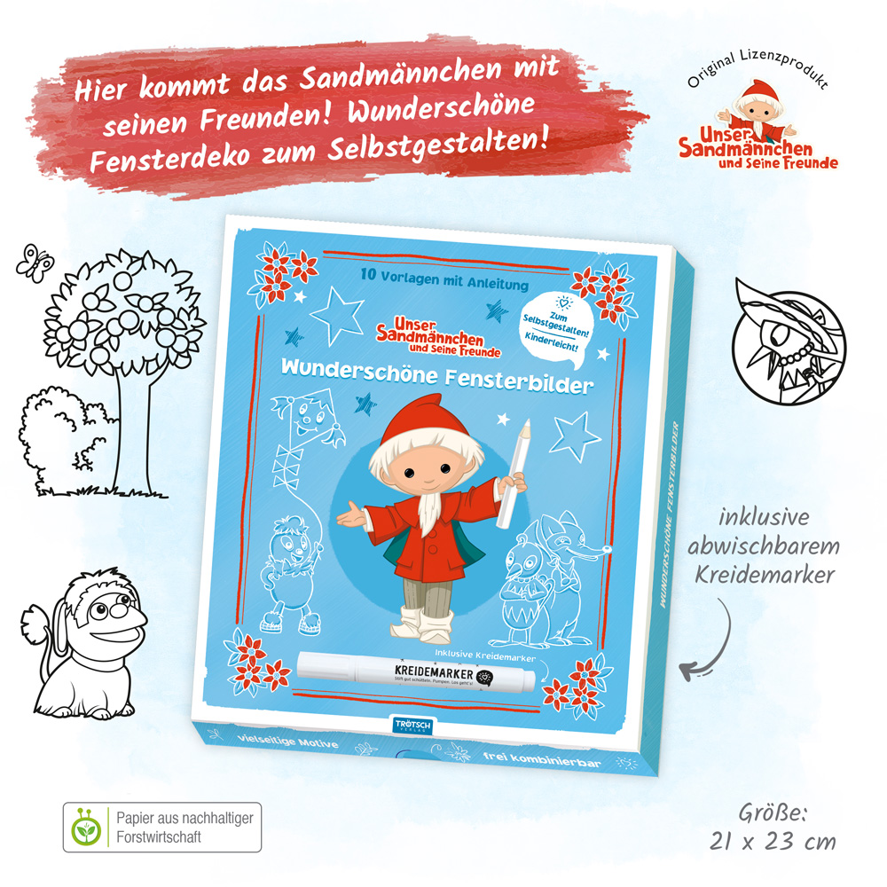 Trötsch Unser Sandmännnchen Mappe mit Vorlagen und Kreidemarker Wunderschöne Fensterbilder mit Kreidemarker