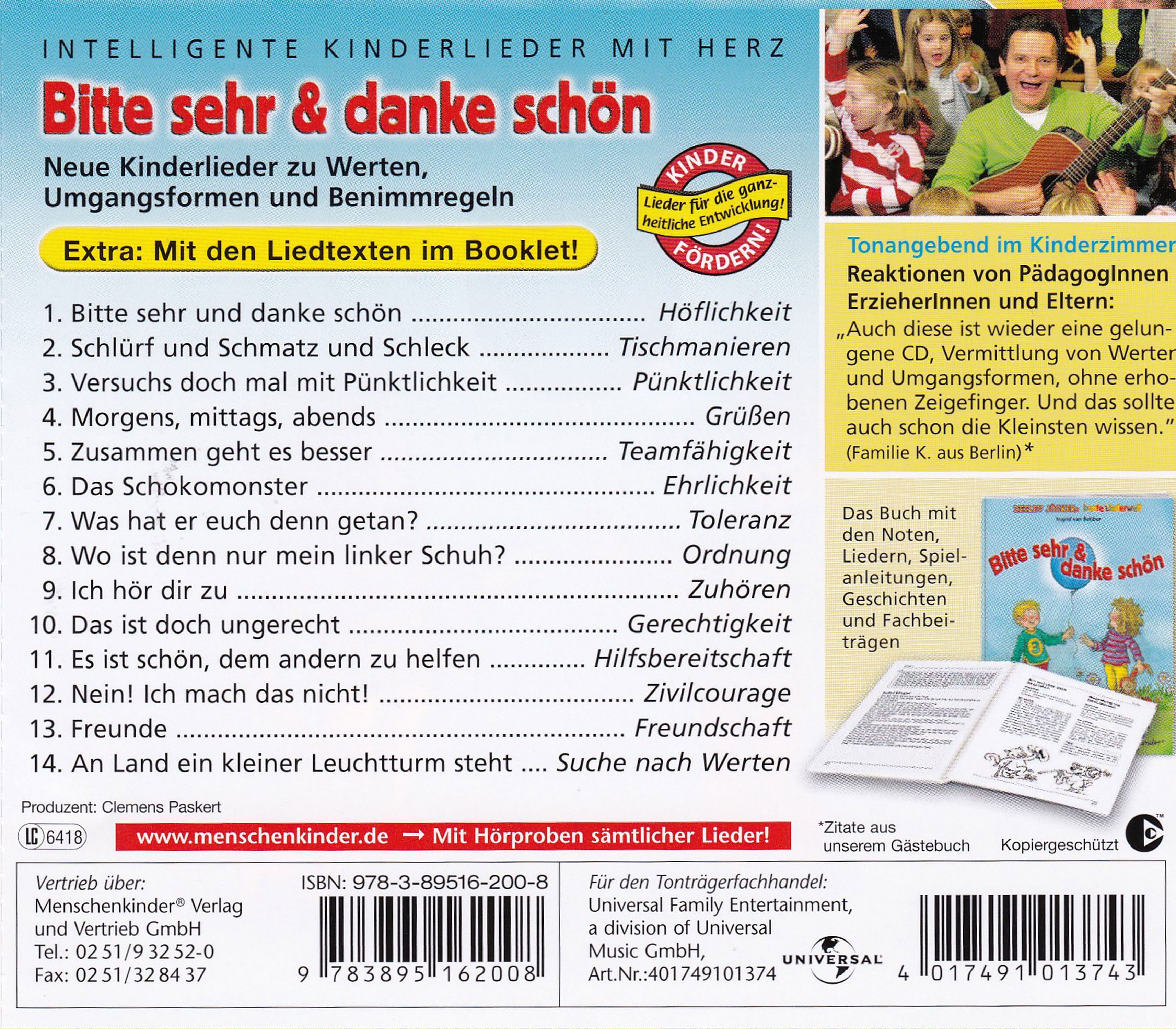 Mit 14 Liedern von Detlev Jöcker werden Kindern spielerisch, kreativ und ohne erhobenen Zeigefinger Werte, Umgangsformen und Benimmregeln vermittelt.