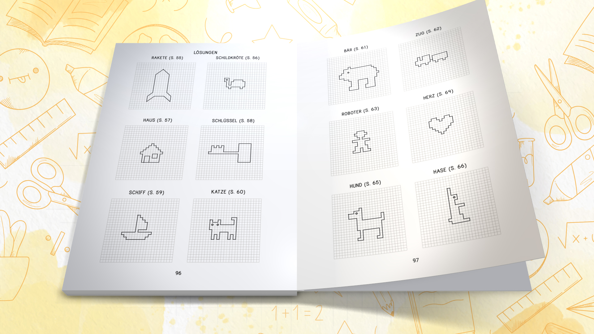 Das grafische Rätsel kann auch in Form eines Diktats spielerisch mit Eltern oder Lehrer gelöst werden. Dafür braucht Ihr Kind ein kariertes Heft oder Blatt Papier. Die Anleitung zum grafischen Diktat finden Sie im Buch. Kinder lieben diese Übungen. Sie sind neugierig und zeichnen die Linien gerne. Am Ende heißt es meistens: Noch eins bitte!