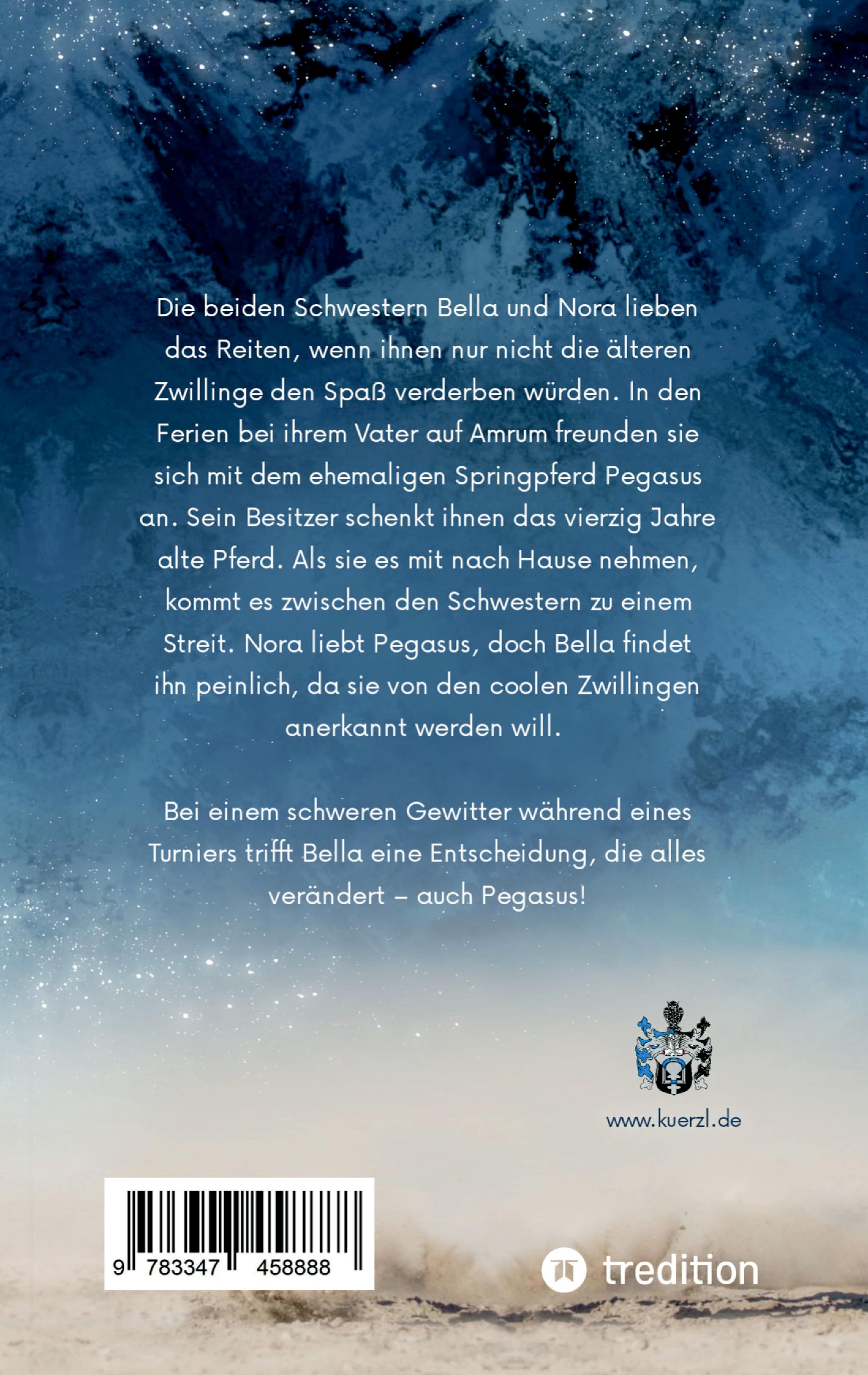 Die beiden Schwestern Bella und Nora lieben das Reiten, wenn ihnen nur nicht die älteren Zwillinge den Spaß verderben würden. In den Ferien bei ihrem Vater auf Amrum freunden sie sich mit dem ehemaligen Springpferd Pegasus an. Sein Besitzer schenkt ihnen das vierzig Jahre alte Pferd. Als sie es mit nach Hause nehmen, kommt es zwischen den Schwestern zu einem Streit. Nora liebt Pegasus, doch Bella findet ihn peinlich, da sie von den coolen Zwillingen anerkannt werden will. Sie träumt von einem schönen jungen Traumpferd. Daher weigert sie sich, im Unterricht Pegasus zu reiten, und zieht das Schulpony vor. Die kleine Nora liebt Pegasus und kann mit ihm, wie eine Pferdeflüsterin, hervorragend kommunizieren. Schließlich reitet sie ihn anstelle ihrer Schwester.Bei einem schweren Gewitter während eines Turniers trifft Bella eine Entscheidung, die alles verändert - auch Pegasus!