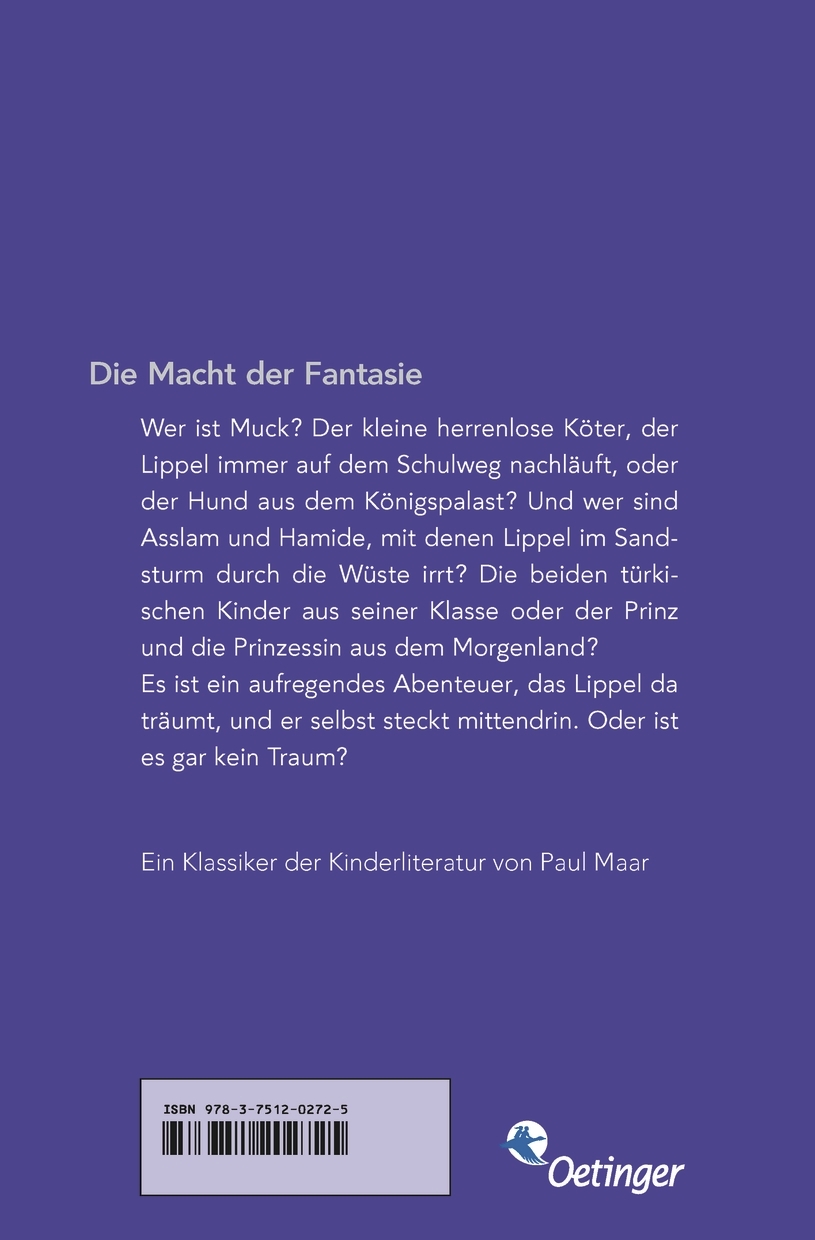 1001 Nacht - wenn Träume wahr werden! Wer ist Muck? Der kleine herrenlose Köter, der Lippel immer auf dem Schulweg nachläuft, oder der Hund aus dem Königspalast? Und wer sind Asslam und Hamide, mit denen Lippel im Sandsturm durch die Wüste irrt? Die beiden türkischen Kinder aus seiner Klasse oder der Prinz und die Prinzessin aus dem Morgenland? Es ist ein aufregendes Abenteuer, das Lippel da träumt, und er selbst steckt mittendrin. Oder ist es gar kein Traum? Über die Macht der Fantasie - ein echter Klassiker von Paul Maar.