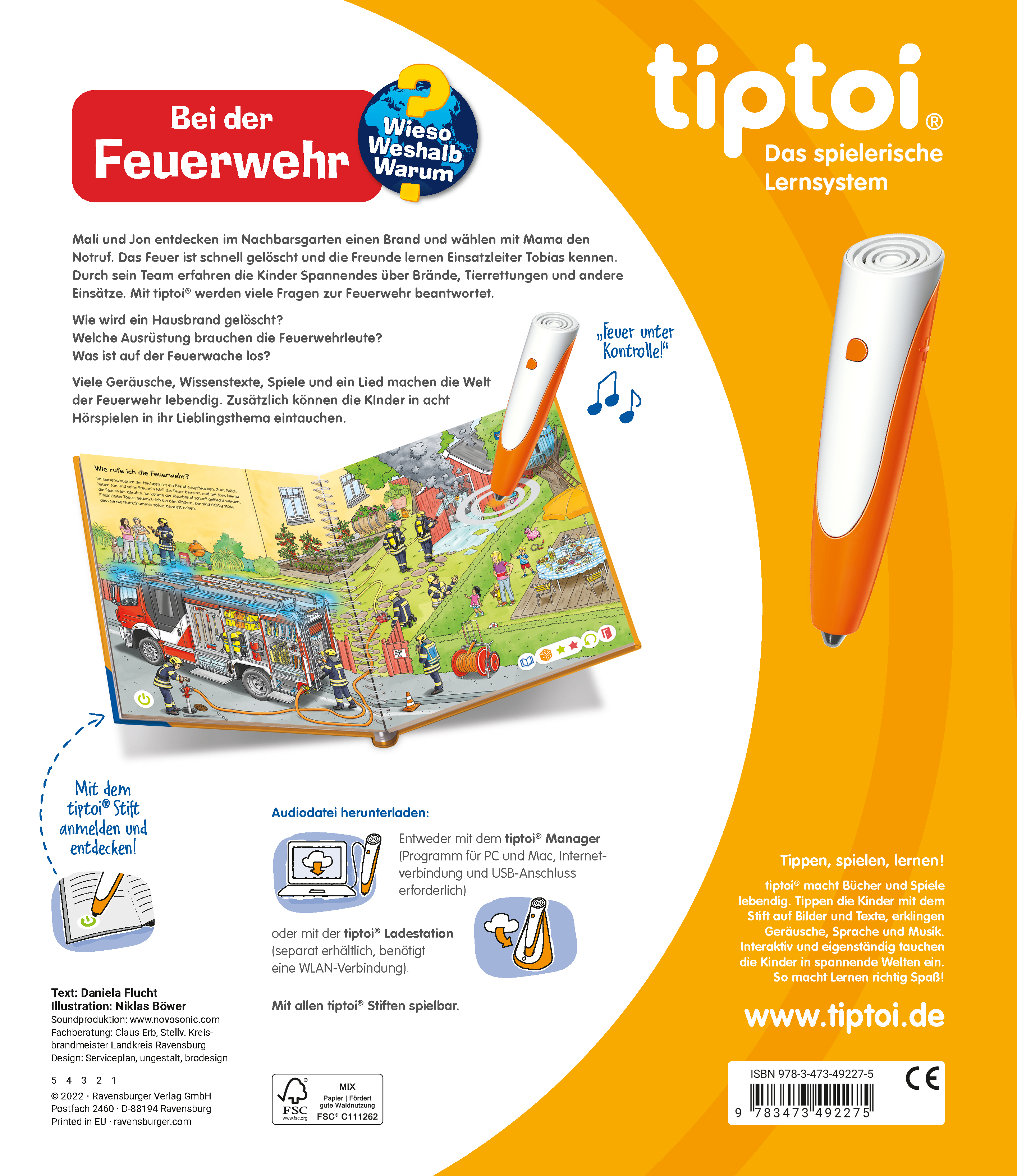 | Schlagworte | Berufe • Beschäftigung • beschäftigung für unterwegs • Beschäftigung für Zuhause • Beschäftigung Kinder • Bilderbuch • Brand löschen • Buch • Bücher • Fahrzeuge • Feuerwehr • Feuerwehrauto • Feuerwehrmann • für Jungen • für kinder ab 4 jahre • für Mädchen • Geschenk • Geschenkidee • Geschichte • Hörspiel • interaktiv • Kinder beschäftigen • Kinderbuch • Kinderbücher • Kindergarten • Kindergarten Buch • Kinderlexika • Lernbuch • Lernbücher • Lernen • Lernspiel • Lernspielzeug • Lernsystem • Lieder • Mitmachbuch • Reime • Rettungseinsatz • Sachbilderbuch • Soundbuch • Spielen • Spielzeug • Technik • Tiere • tip toi • tiptoi • tiptoi-bücher • tiptoi Wieso? Weshalb? Warum? • Tip Toy • Vorschule • Welt • Wieso? Weshalb? Warum? • Wissen |