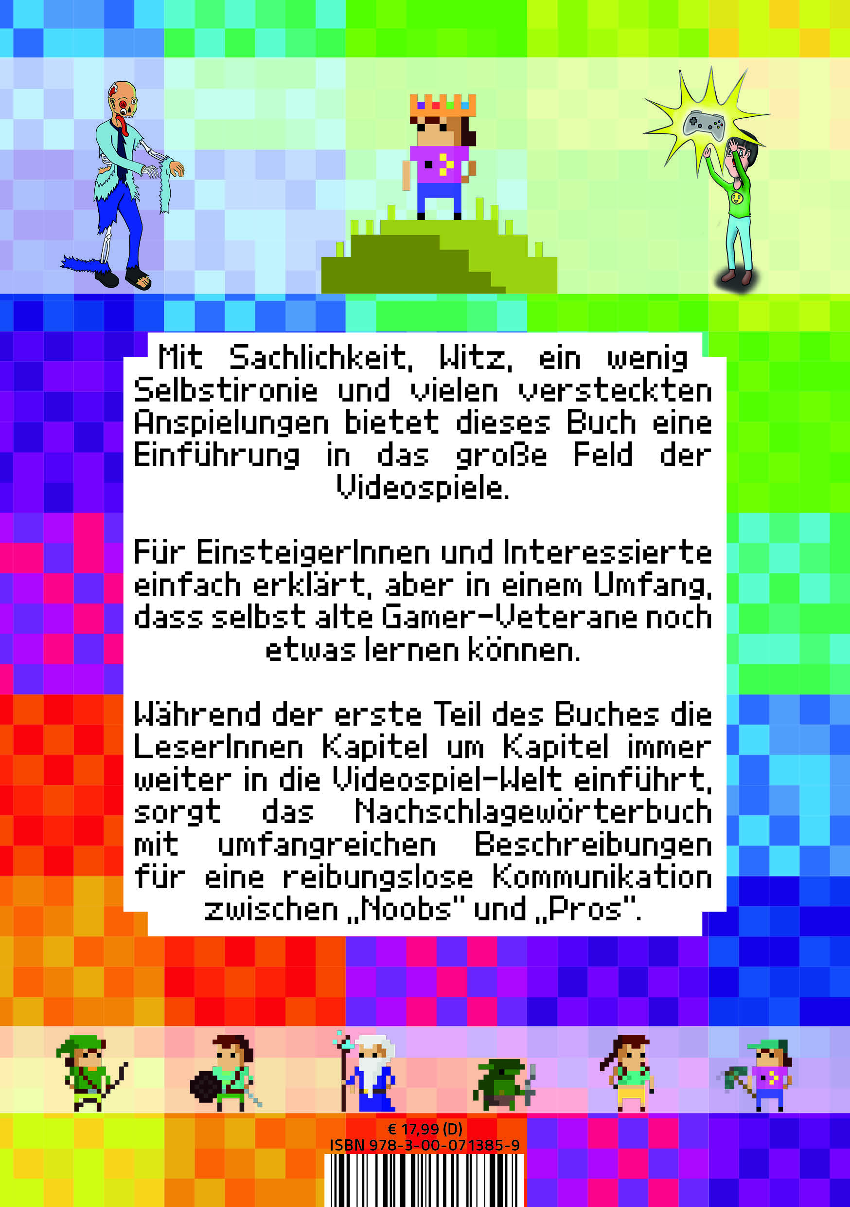 Für EinsteigerInnen und Interessierte einfach erklärt, aber in einem Umfang, dass selbst alte Gamer-Veterane noch etwas lernen können. Während der erste Teil des Buches die LeserInnen Kapitel um Kapitel immer weiter in die Videospiel-Welt einführt, sorgt das Nachschlagewörterbuch mit umfangreichen Beschreibungen für eine reibungslose Kommunikation zwischen „Noobs“ und „Pros“.