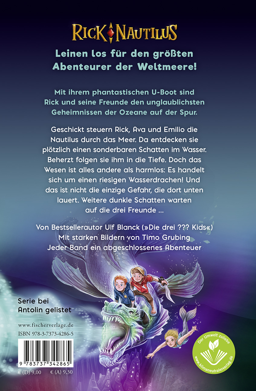 Geschickt steuern Rick, Ava und Emilio die Nautilus durch das Meer. Da entdecken sie plötzlich einen sonderbaren Schatten im Wasser. Beherzt folgen sie ihm in die Tiefe. Doch das Wesen ist alles andere als harmlos: Es handelt sich um einen riesigen Wasserdrachen! Und das ist nicht die einzige Gefahr, die dort unten lauert. Weitere dunkle Schatten warten auf die drei Freunde ....