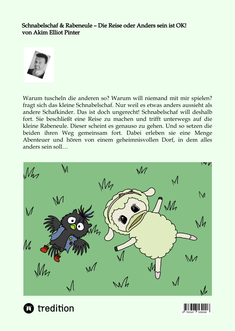 Akim Elliot Pinter, Jahrgang 1965 ist vielseitig. Im ersten Leben war er Führungskraft in einem internationalen Unternehmen der Nahrungsmittelbranche. Im zweiten Leben war er Trainer und Coach im Bereich Vertrieb und Persönlichkeitsentwicklung. Mit 50 folgte er seinem Herzen und hat ein Studium zum Toningenieur absolviert. Seitdem hat er zahlreiche englischsprachigen und deutsche Lieder getextet, komponiert und produziert. Er schrieb zunächst für seine eigenen Kinder das Kindermusical „Ami, die kleine Ameise“, dass er später als Kinderbuch und Hörbuch veröffentlichte. Darauf folgte das Kinderhörbuch „Schnabelschaf und Rabeneule – Die Reise oder Anders sein ist ok!“ Sein neuestes Werk „7 Schritte zur Rettung der Welt – Ein Brief an Dich“ ist für die Zukunft unserer Kinder geschrieben und fordert die Erwachsenen auf, sich den echten Ursachen des Klimawandels zu stellen. Er ist heute freier Autor und Musikproduzent. Er lebt auf dem einmaligen Planeten Erde.