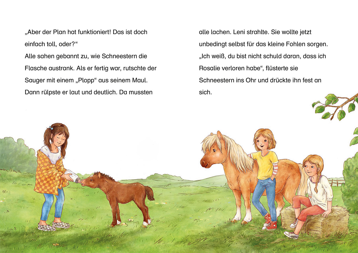 Das kleine Fohlen Schneestern hat seine Mutter verloren und muss mit der Flasche aufgezogen werden. Emma hat eine tolle Idee, wie sie dem Fohlen zur Seite stehen kann, und Sheltie hilft natürlich auch kräftig mit. Lustige Pony-Abenteuer - viele bunte Bilder - einfach zu lesen! Zum Vorlesen und Lesen üben ab 7 Jahren.