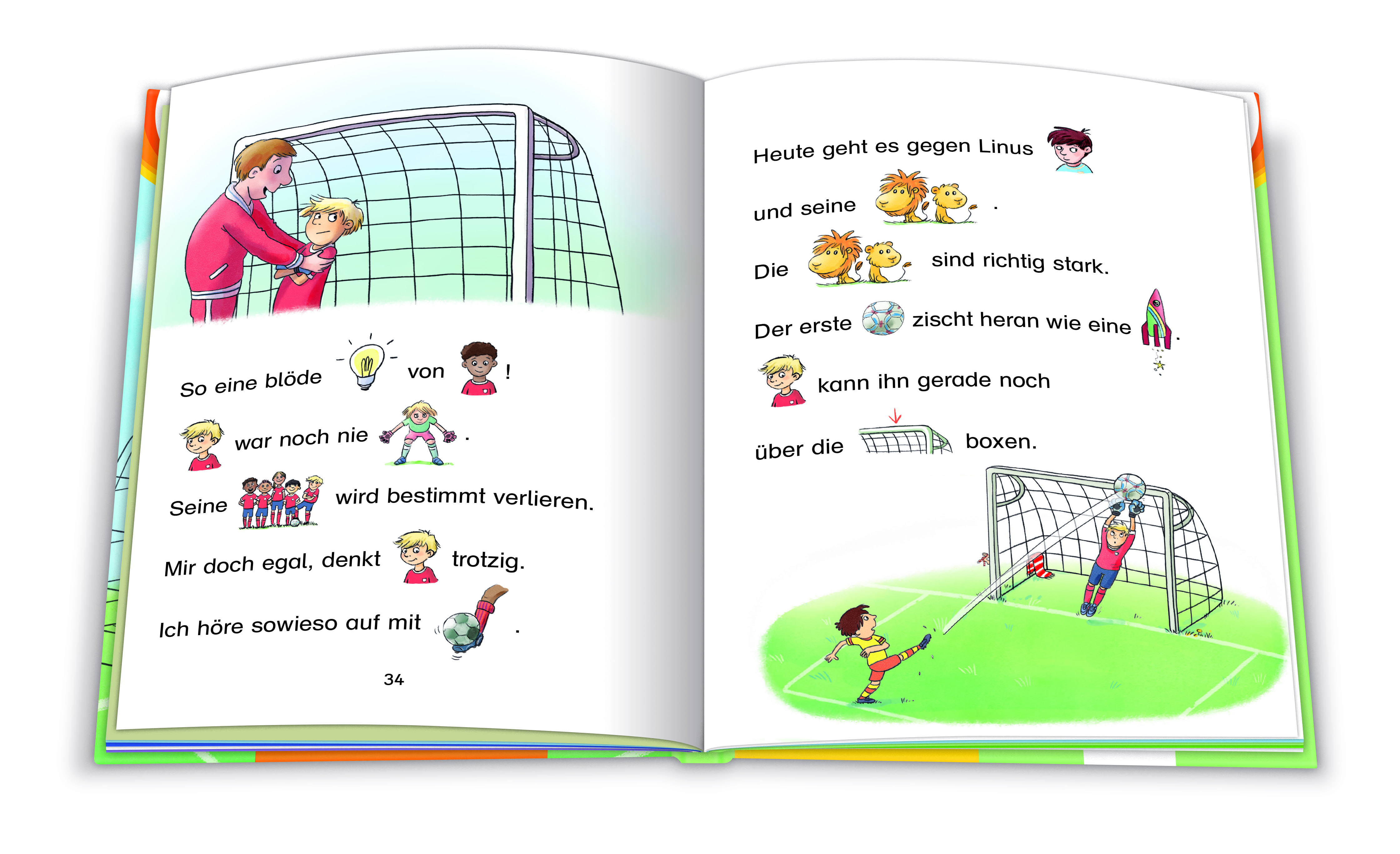 | Schlagworte | Bilder ersetzen Hauptwörter • Bilder ersetzen Namenwörter • Bilder ersetzen Nomen • Bilder ersetzen Substantive • Bücherbär • Erstleser • Freundschaft • Fußballfreunde • Fußballgeschichte zum Lesenlernen • Fußballmannschaft • Fußball spielen • Fußballtraum • Lesebilderbuch • Lesen lernen • Lesestufe • Mannschaftsgeist • Stürmer • Teamgeist • Torwart • Vignettengeschichte |