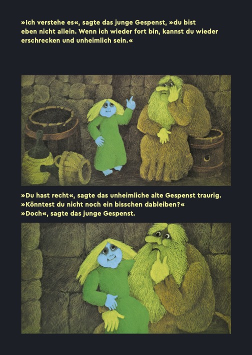 In einem Schloss in Schottland lebt ein junges Gespenst, und dieses Gespenst ist alles außer gruselig. Im Gegenteil, es wirkt auf die Leute unfreiwillig komisch: Mal stößt es die Ritterrüstung um, mal fällt es mitsamt der Eisenketten die Treppe hinunter. Schließlich schicken die Eltern das junge Gespenst zum unheimlichsten Gespenst des ganzen Landes in die Lehre. Das alte Gespenst von Whistlefield spukt so fürchterlich, dass die Bewohner des Dorfes sich kaum mehr aus ihren Häusern trauen. Doch dann erlebt das junge Gespenst eine Überraschung. Der Meistergeist will gar niemanden erschrecken - er erschrickt selbst die ganze Zeit, und zwar vor allem und jedem! Franz Hohler dreht in seiner Geschichte gekonnt den Spieß um und sorgt für humorigen Gruselspaß. Werner Maurers Bilder mit erdigen Tönen und knalligen Akzenten punkten mit Retro-Charme.